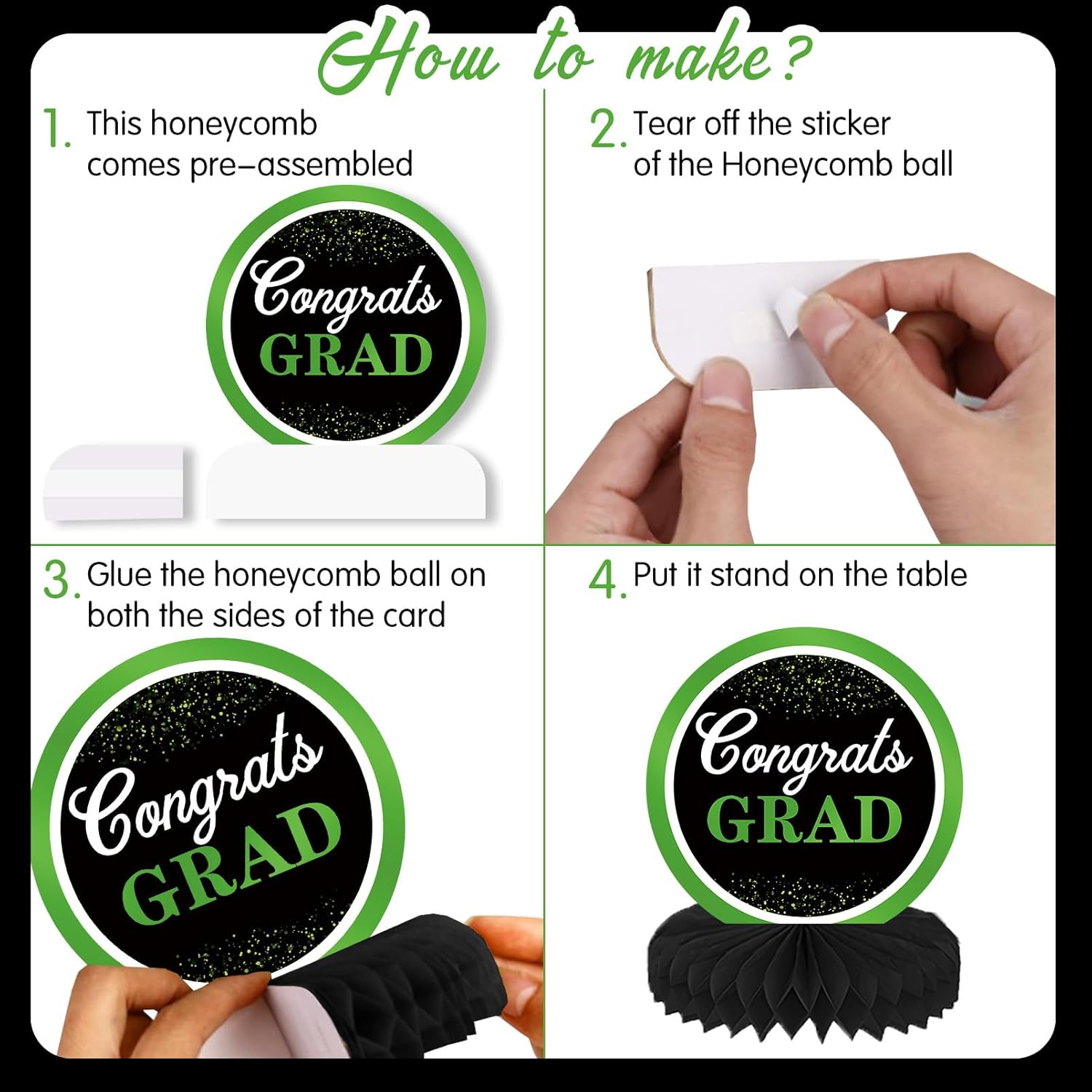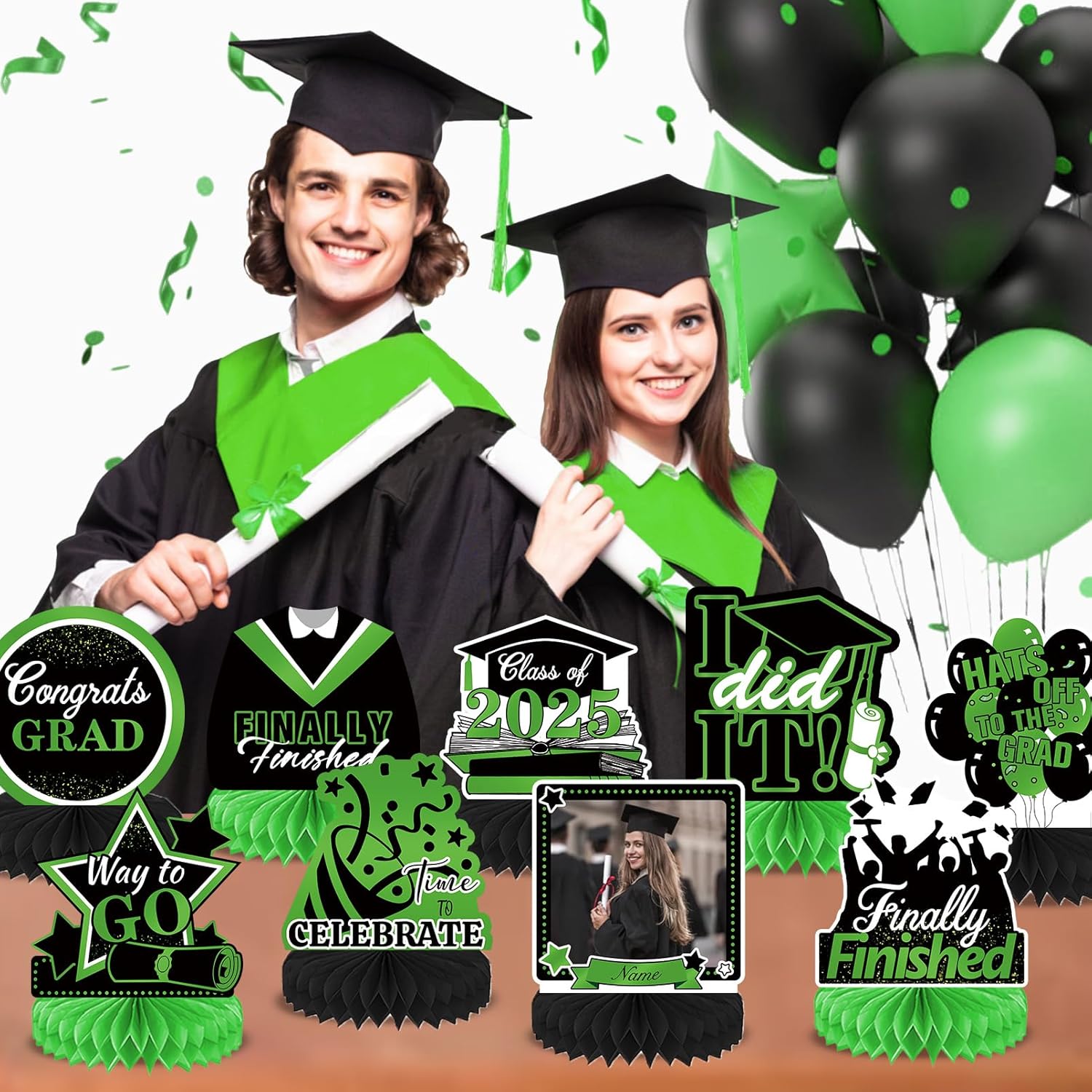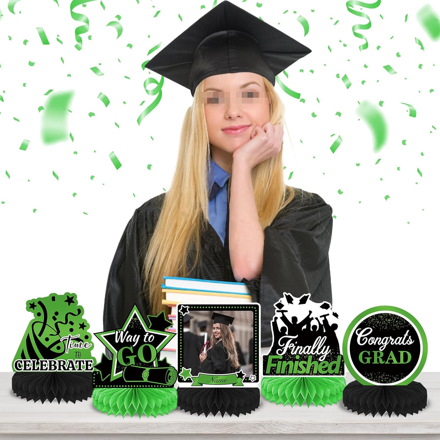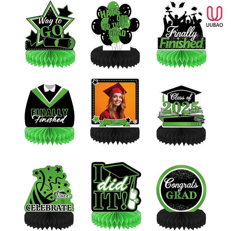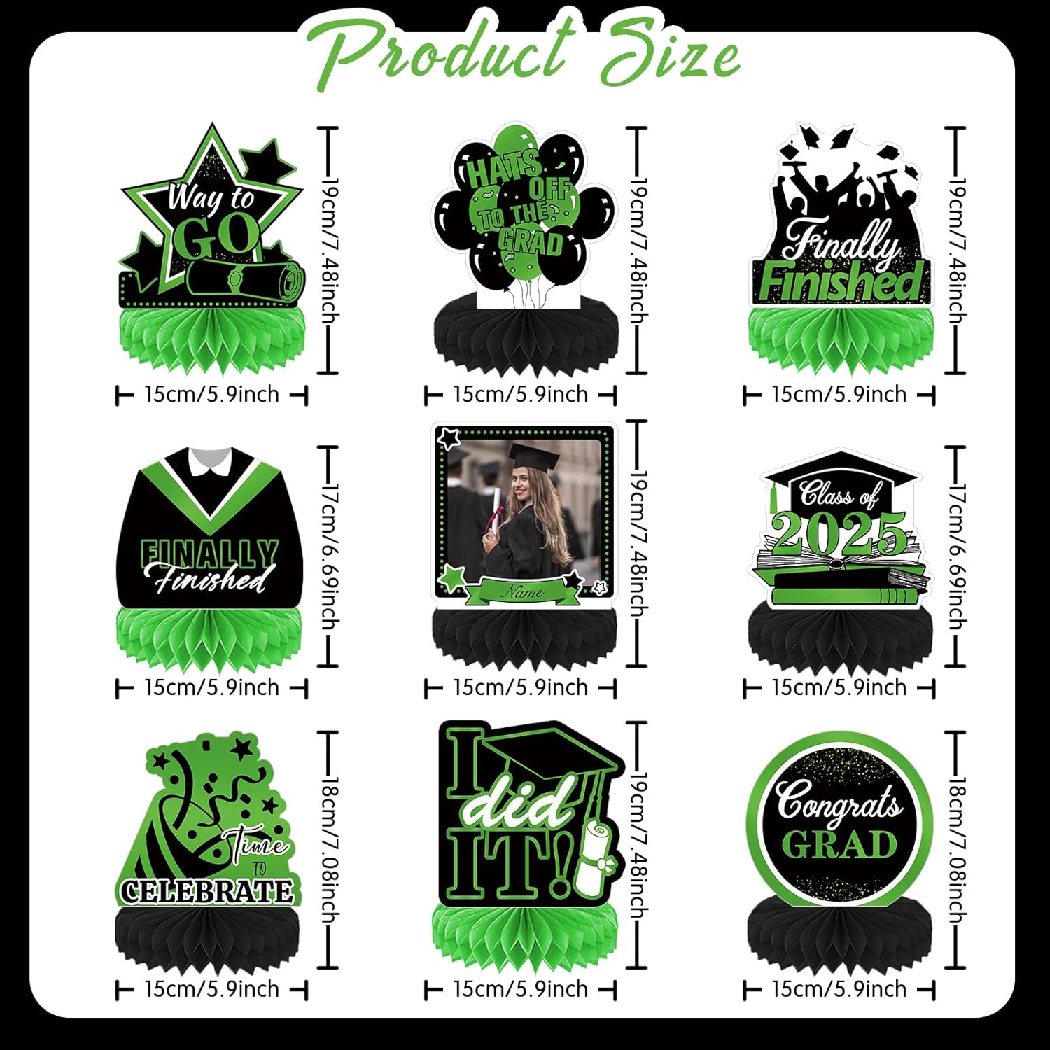 UUBAO 9 PCS Custom Graduation Party Honeycomb Centerpieces Class of 2025 Congrats Grad Decorations Congratulate Graduation Table Toppers for Graduation Party Favor Supplies (Light Green)