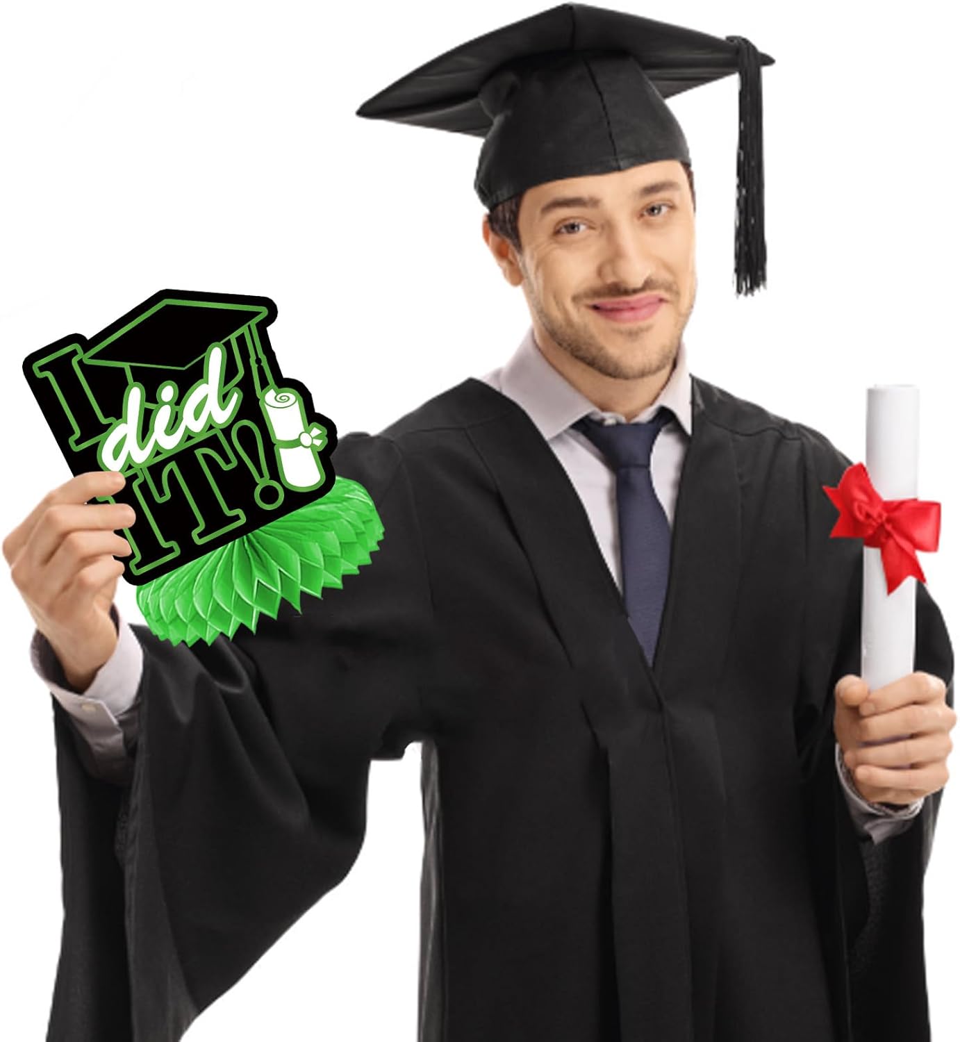 【Wide Application】Decorating your home and party with our honeycomb centerpieces will be a big hit at your party. Package Includes: 9pcs centerpieces to celebrate graduation. Includes stars, balloons, academic gowns, academic caps.