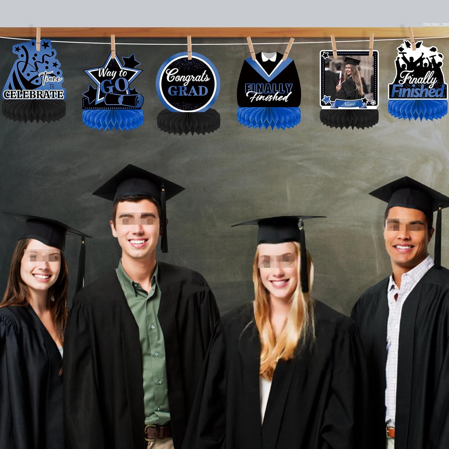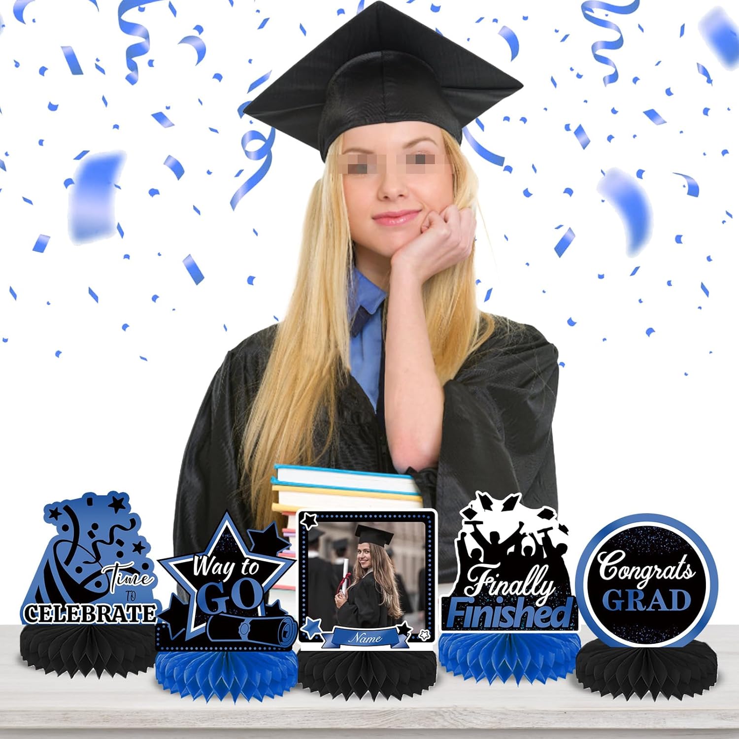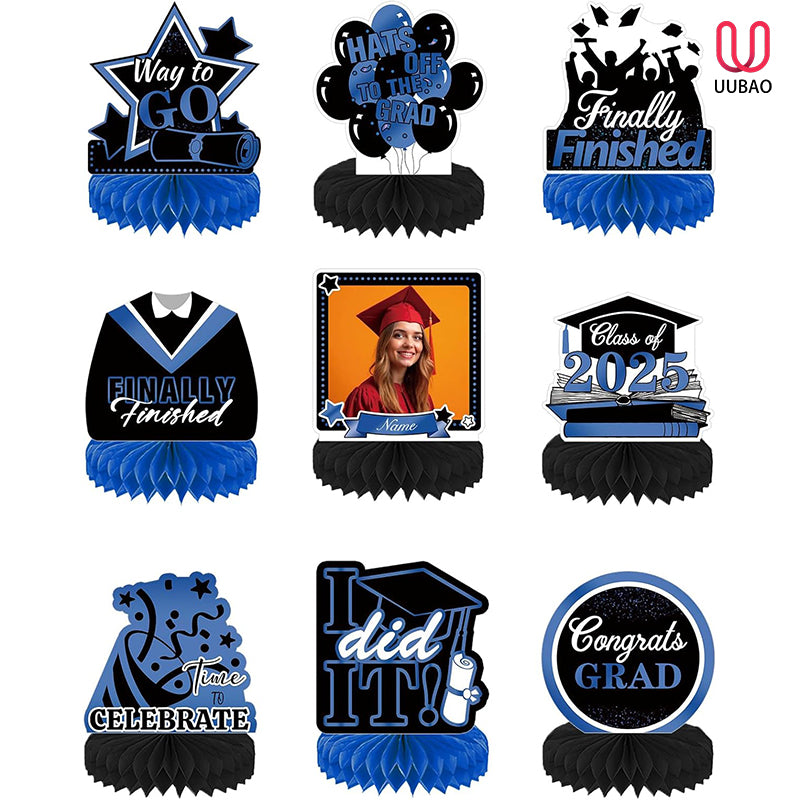 UUBAO 9 PCS Custom Graduation Party Honeycomb Centerpieces Class of 2025 Congrats Grad Decorations Congratulate Graduation Table Toppers for Graduation Party Favor Supplies (Navy Blue)