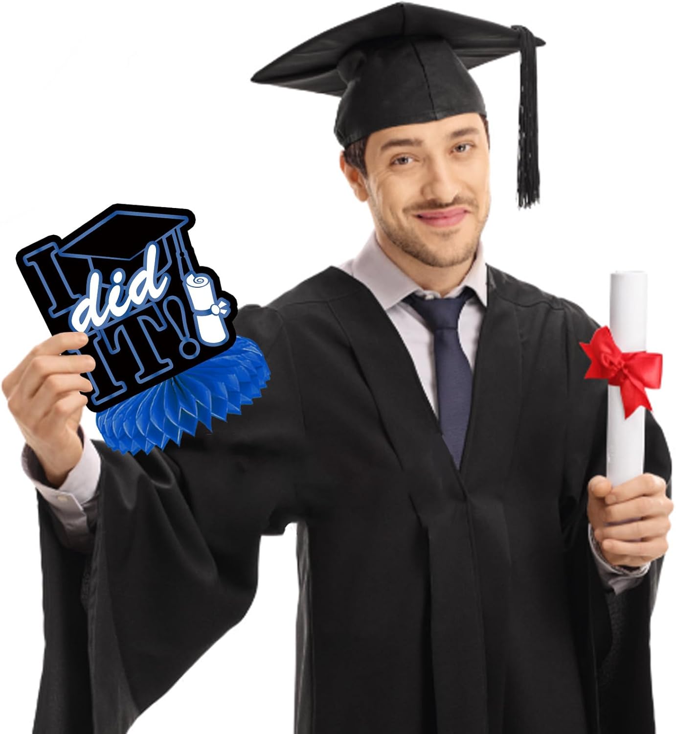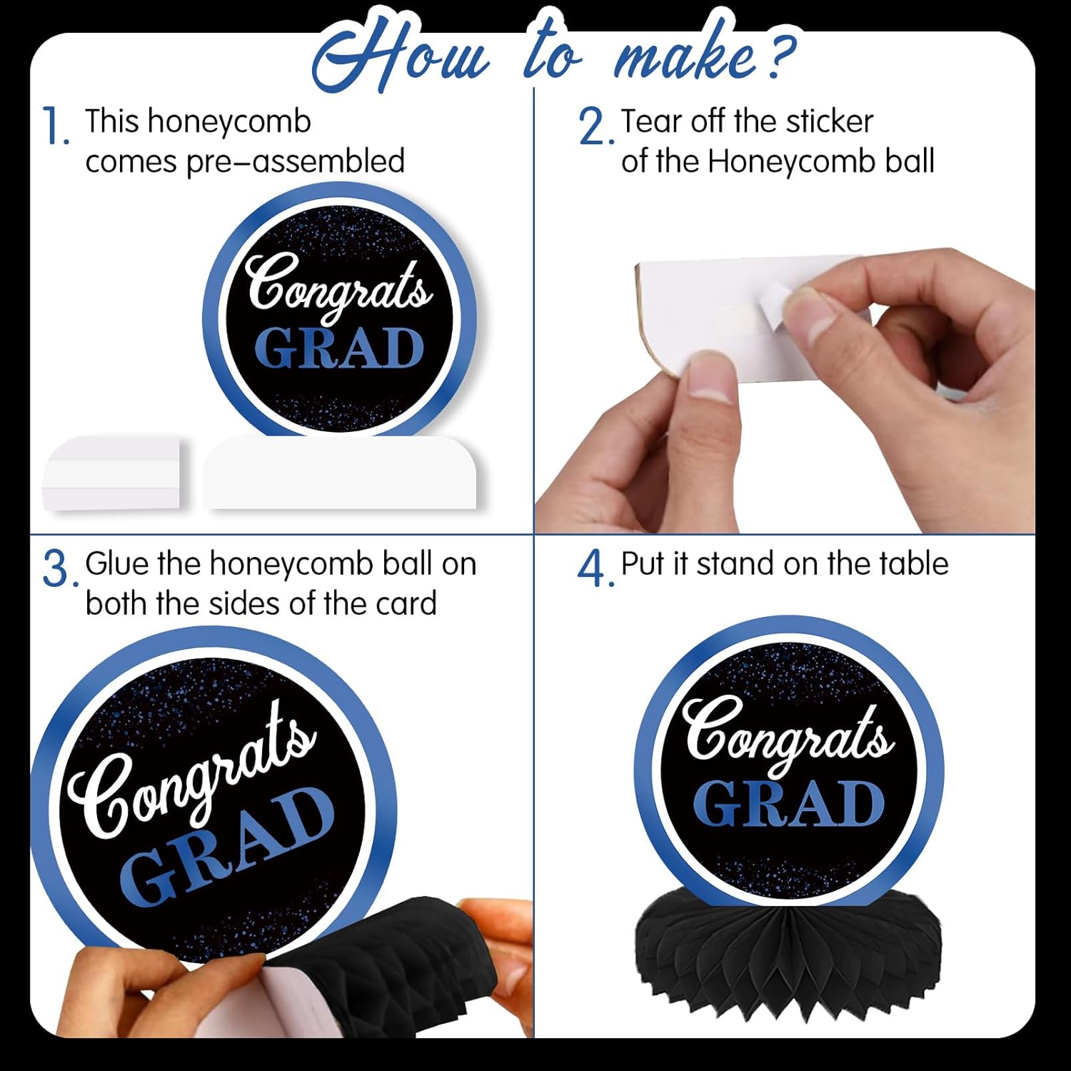 【Wide Application】Decorating your home and party with our honeycomb centerpieces will be a big hit at your party. Package Includes: 9pcs centerpieces to celebrate graduation. Includes stars, balloons, academic gowns, academic caps.