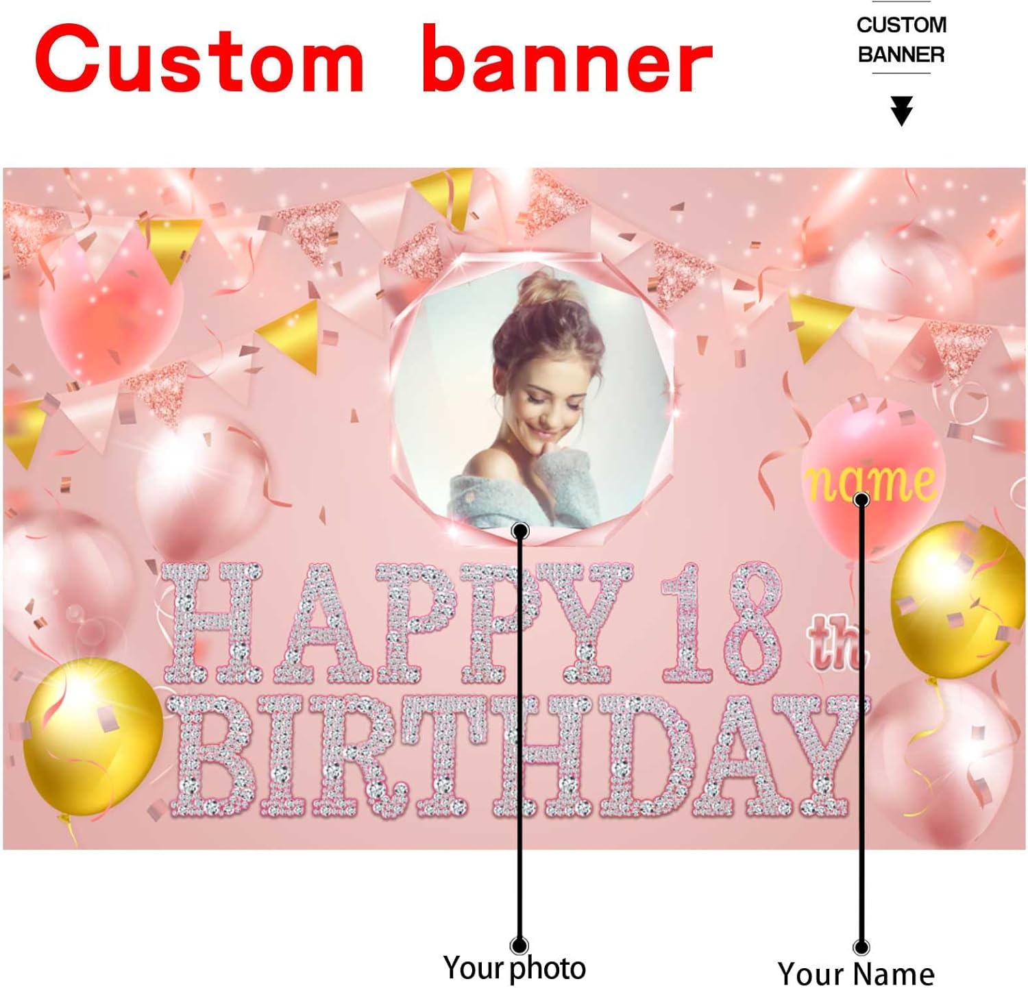 UUBAO Custom Birthday Banner for Party Personalized Backdrop Decoration with Name and Photo(Pink)