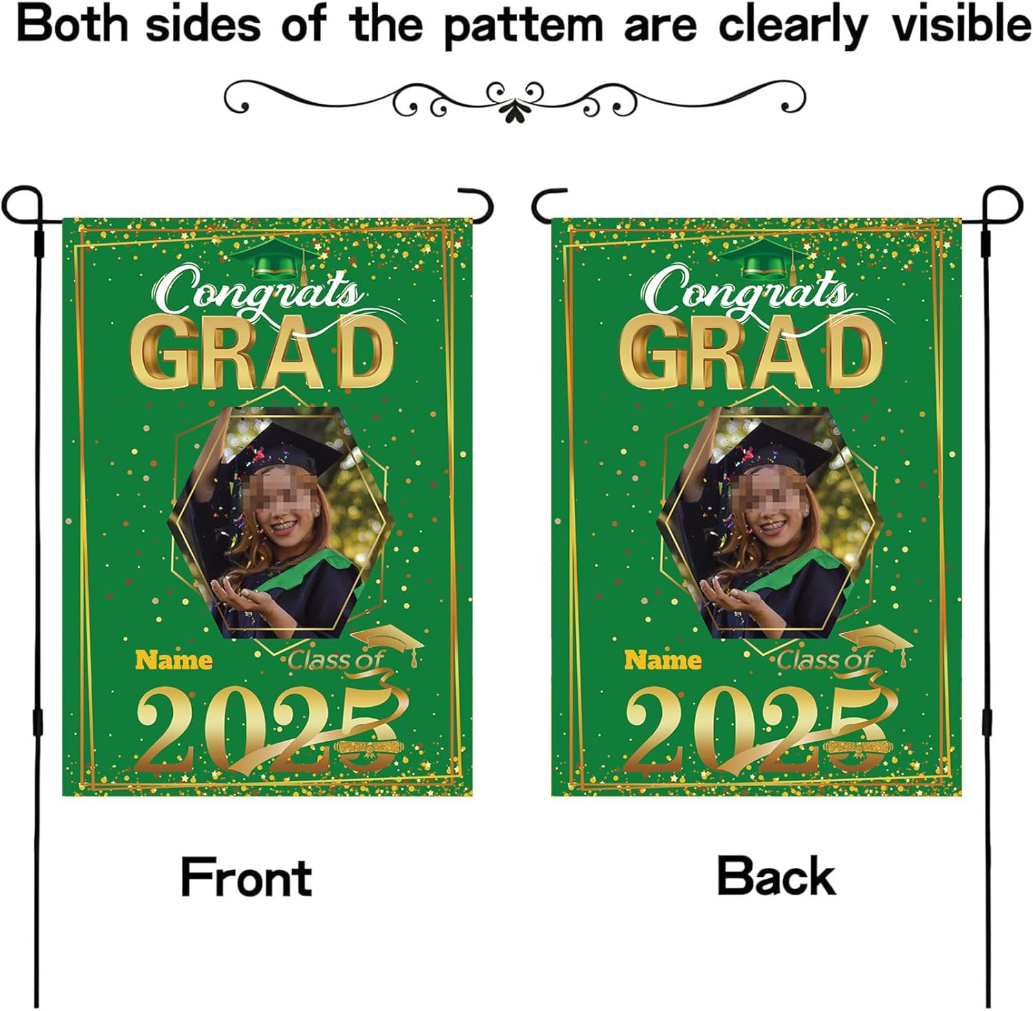 UUBAO Custom Graduation Garden Flag with Photo Class of 2025 Congrats Grad Double Sided Yard Flag Decorative Gifts (Dark Green)