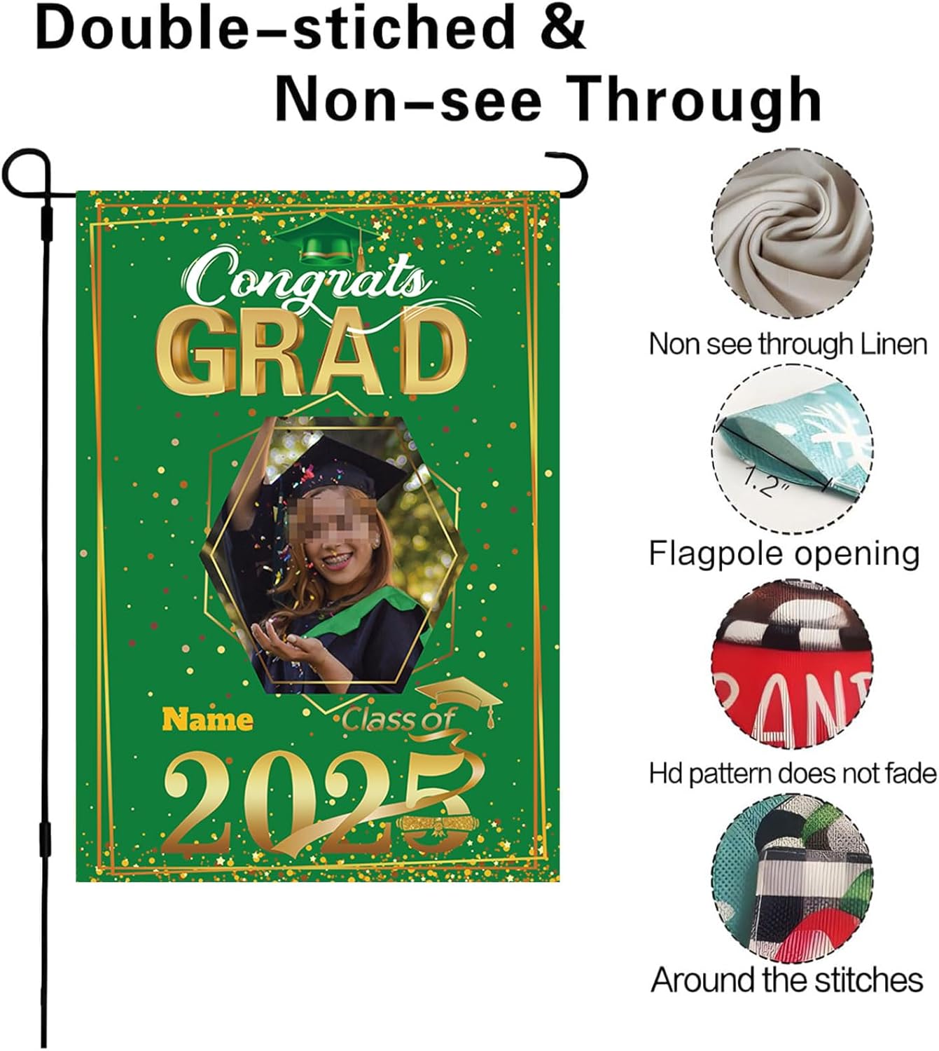 【Customize】Celebrate your graduation with our Custom 2025 graduation flag,featuring customizable size, photo and name for a truly personal touch.Just click "customize now" button on top right.