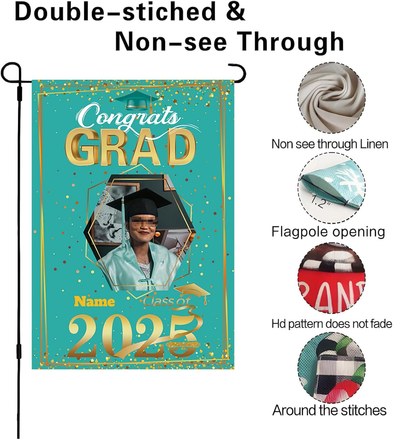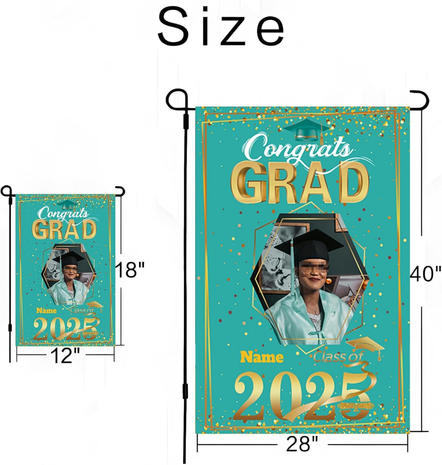 【Customize】Celebrate your graduation with our Custom 2025 graduation flag,featuring customizable size, photo and name for a truly personal touch.Just click "customize now" button on top right.