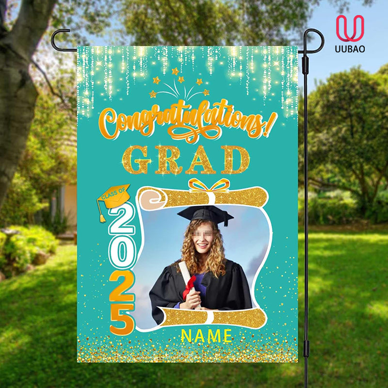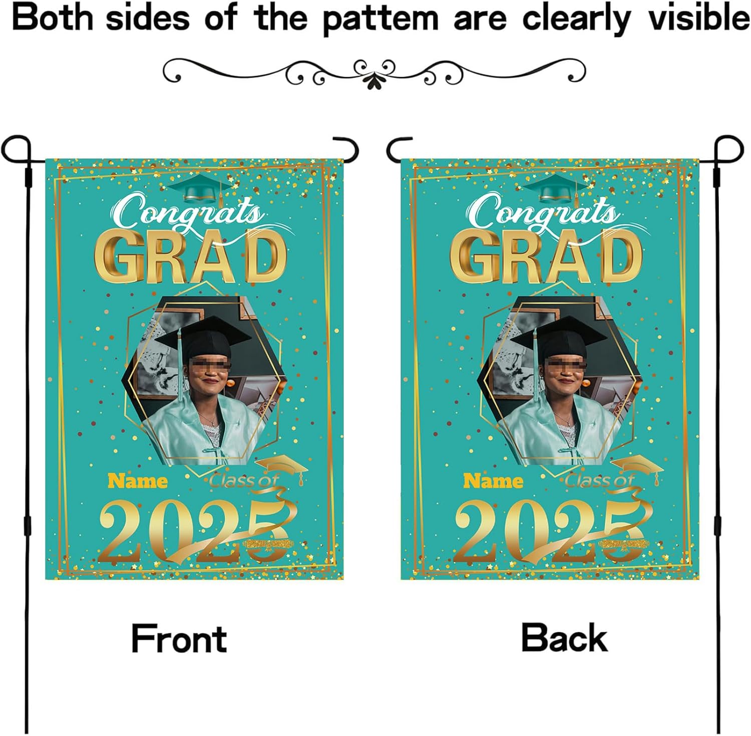 UUBAO Custom Graduation Garden Flag with Photo Class of 2025 Congrats Grad Double Sided Yard Flag Decorative Gifts (Peacock Blue)