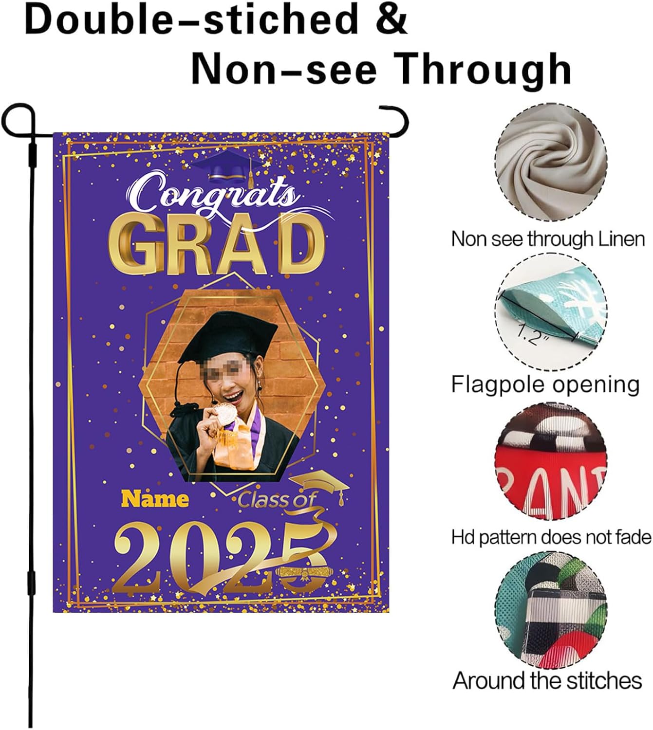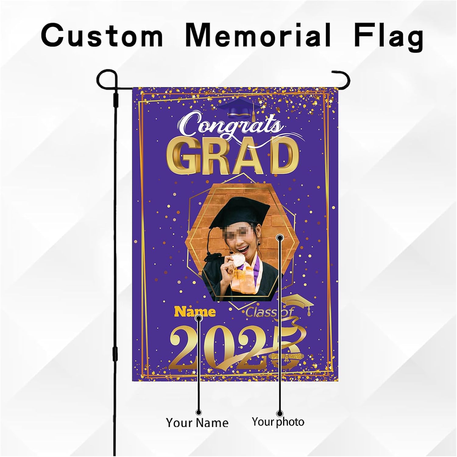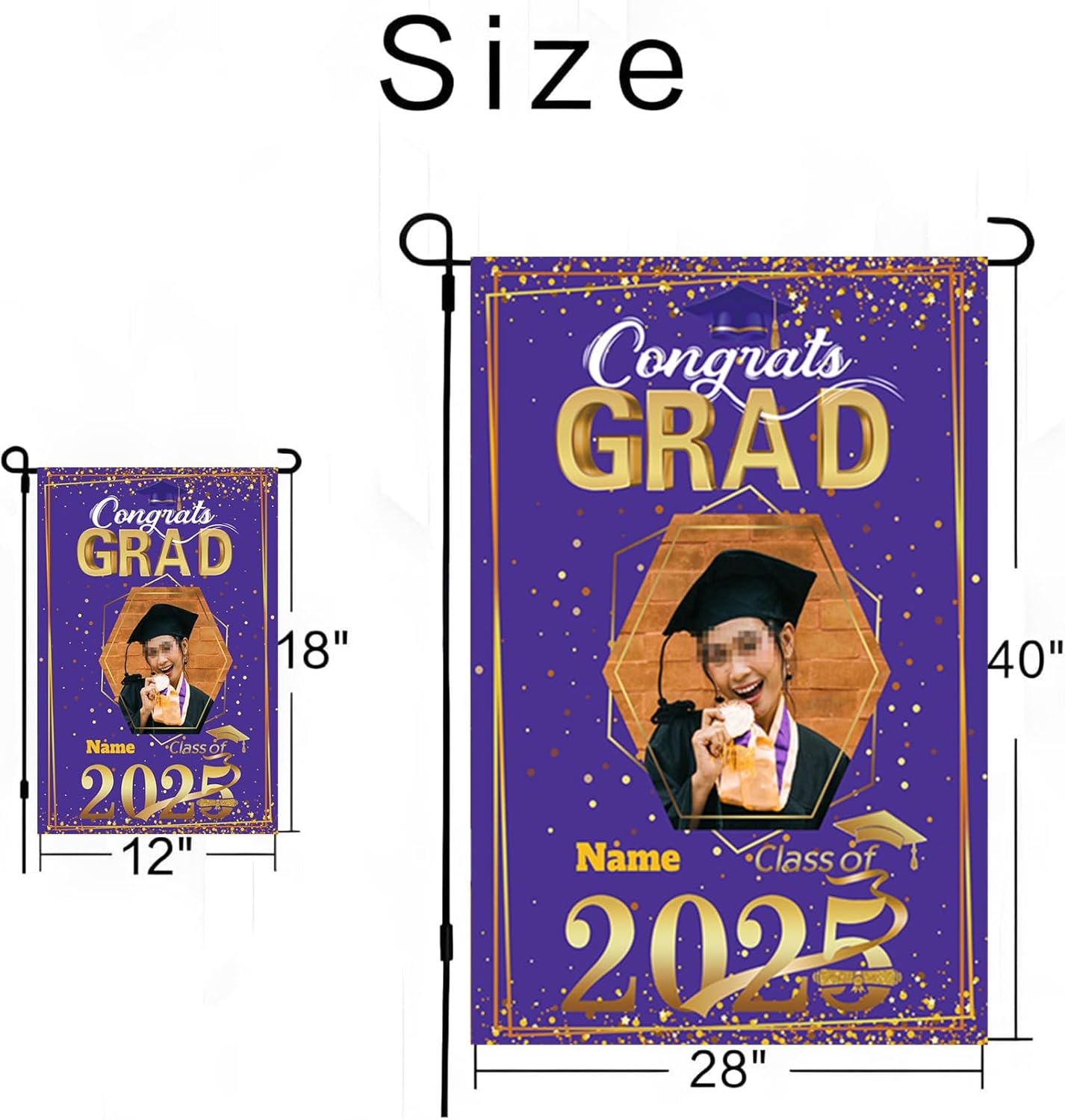 【Customize】Celebrate your graduation with our Custom 2025 graduation flag,featuring customizable size, photo and name for a truly personal touch.Just click "customize now" button on top right.