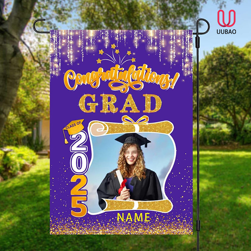 UUBAO Custom Graduation Garden Flag with Photo Class of 2025 Congrats Grad Double Sided Yard Flag Decorative Gifts (Purple)