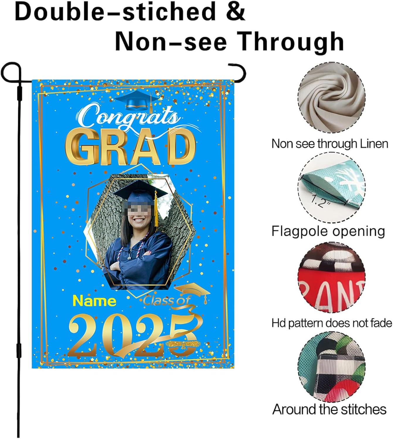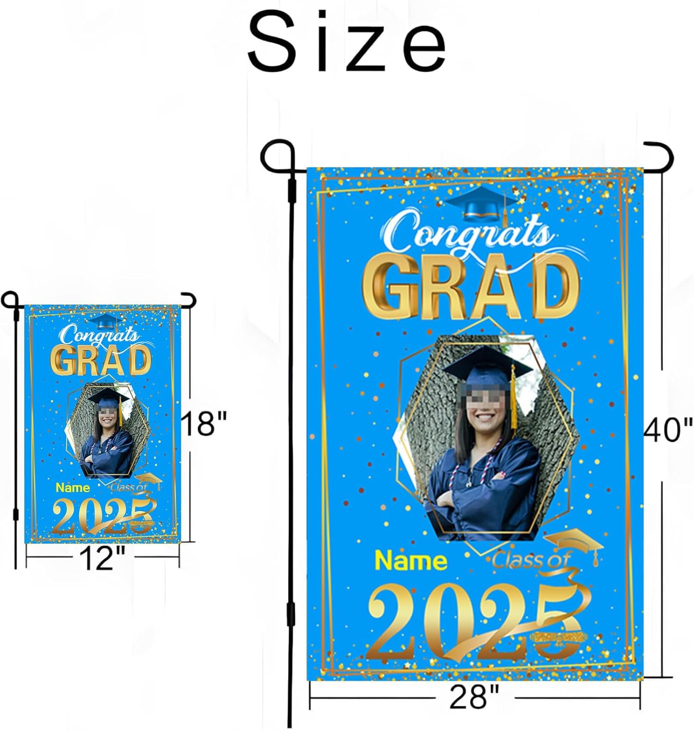 【Customize】Celebrate your graduation with our Custom 2025 graduation flag,featuring customizable size, photo and name for a truly personal touch.Just click "customize now" button on top right.