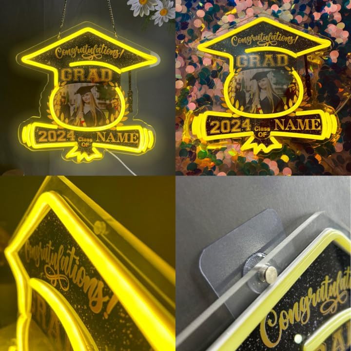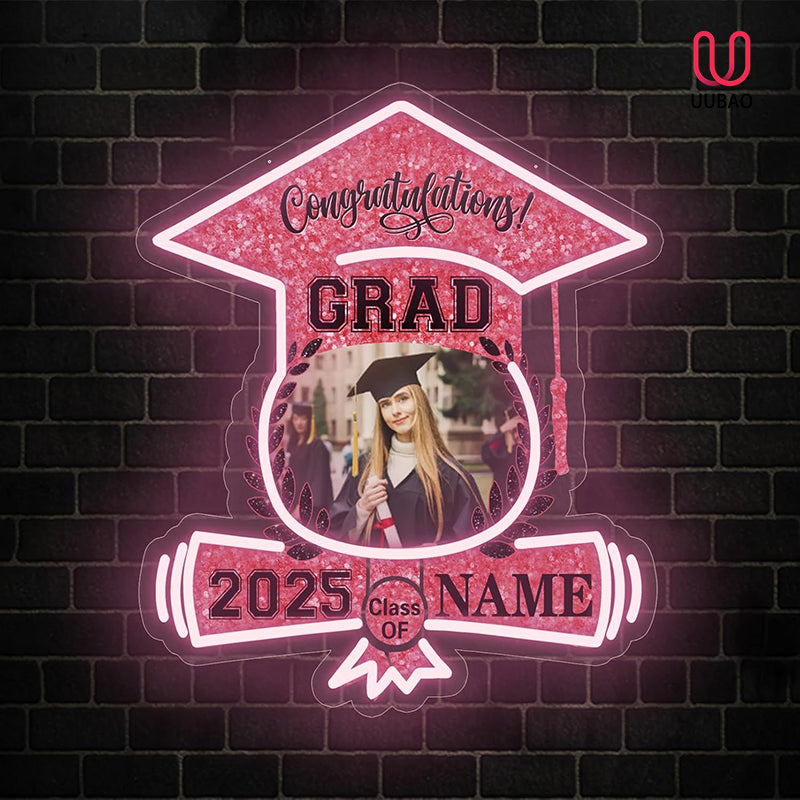 UUBAO Custom Graduation Gift LED Neon Signs Class of 2025 Personalized Photo Congrats Grad USB Powered (Pink)