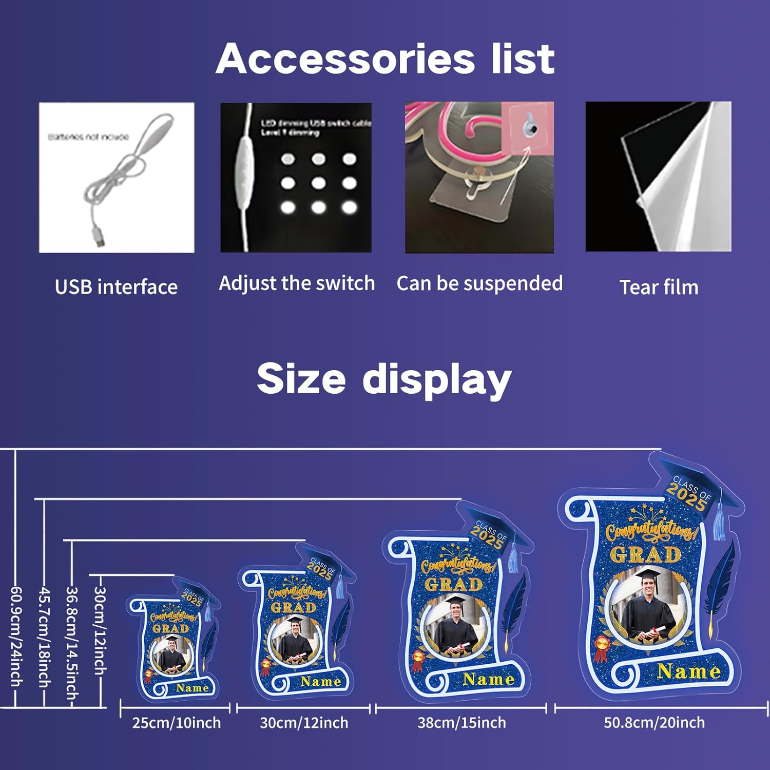 【Customize】Celebrate your graduation with our Custom 2025 Graduation neon sign,the unique style brighten up your space.featuring customizable size, photo and name for a truly personal touch.Just click "customize now" on top right.