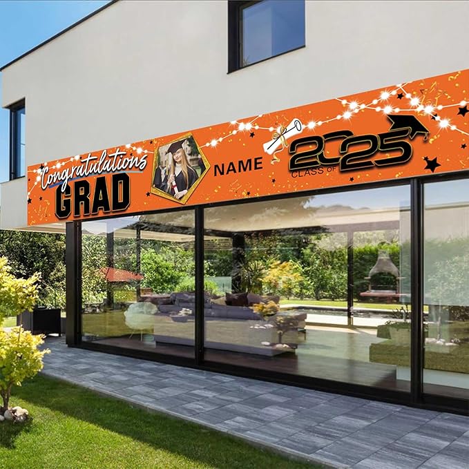 UUBAO Custom Graduation Party Decorations 2025 Personalization Congrats Grad Banner Graduation Backdrop(Orange)