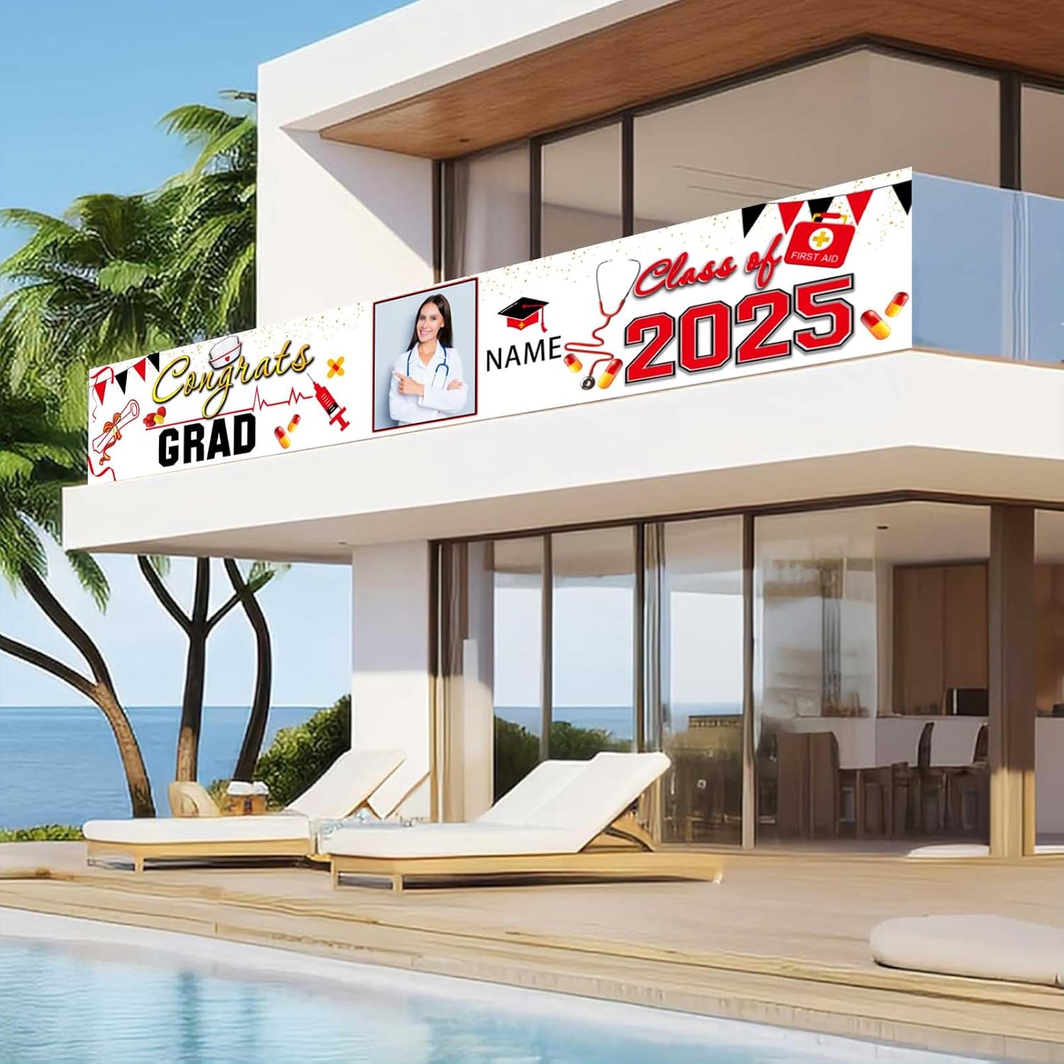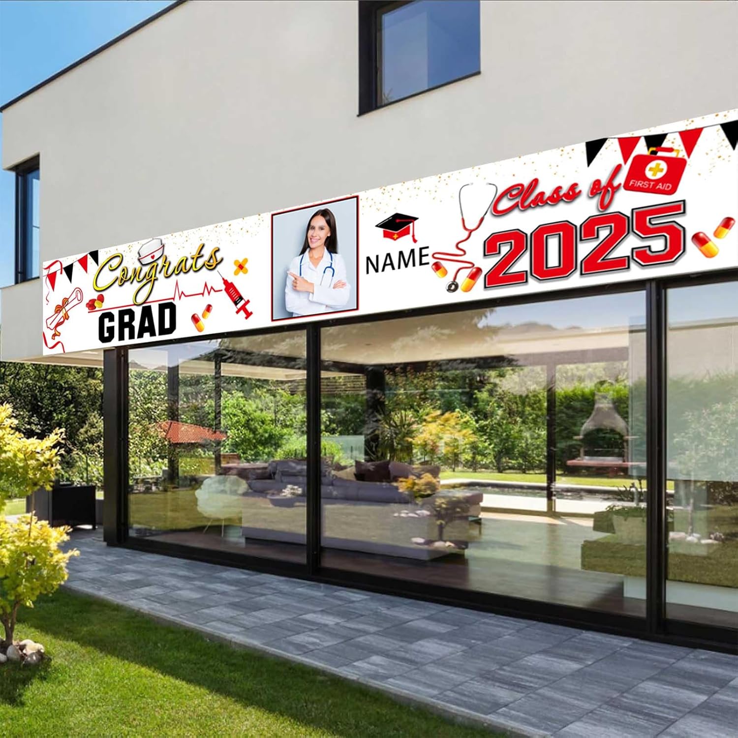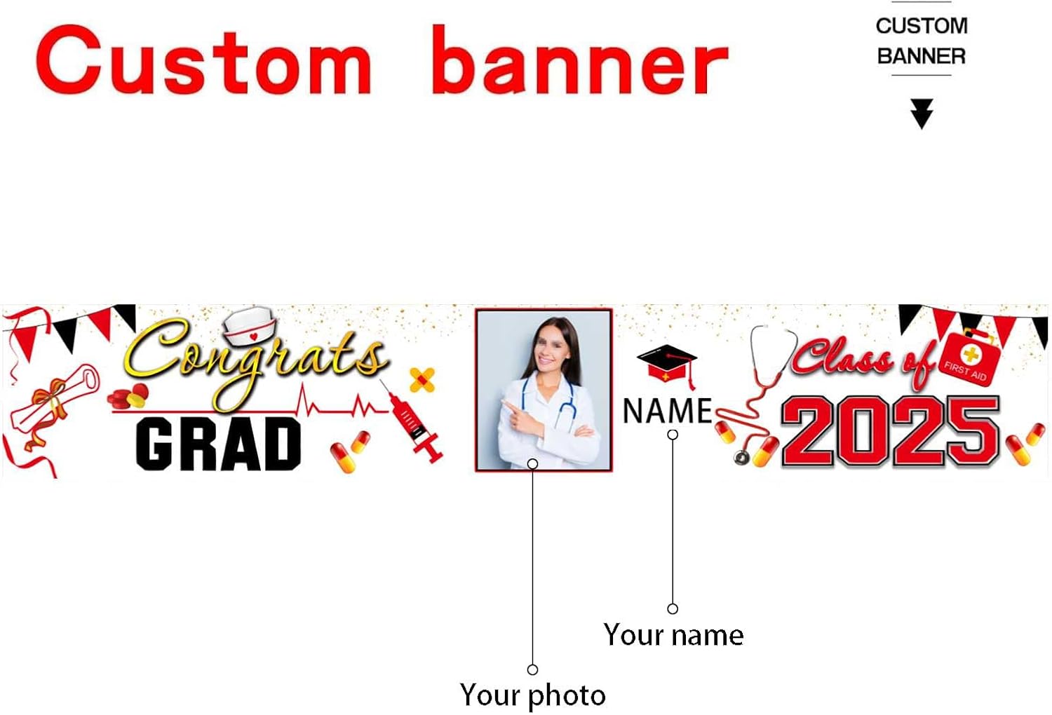🎓Custom Decorations Banner: This is a Congratulations Graduation banner,That supports customization, You can customize name/photo/text on your banner to add atmosphere to your Graduation party.