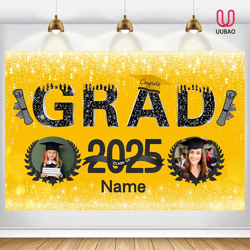 UUBAO Custom Graduation Party Decorations Personalization Banner Class of 2025 Backdrop (Yellow)