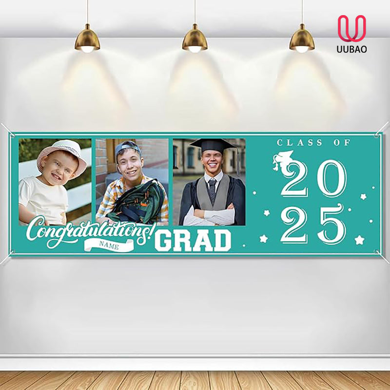 UUBAO Custom Graduation Party Decorations Personalization Banner Class of 2025 Backdrop (Peacock Blue)