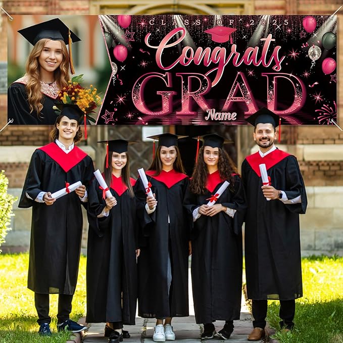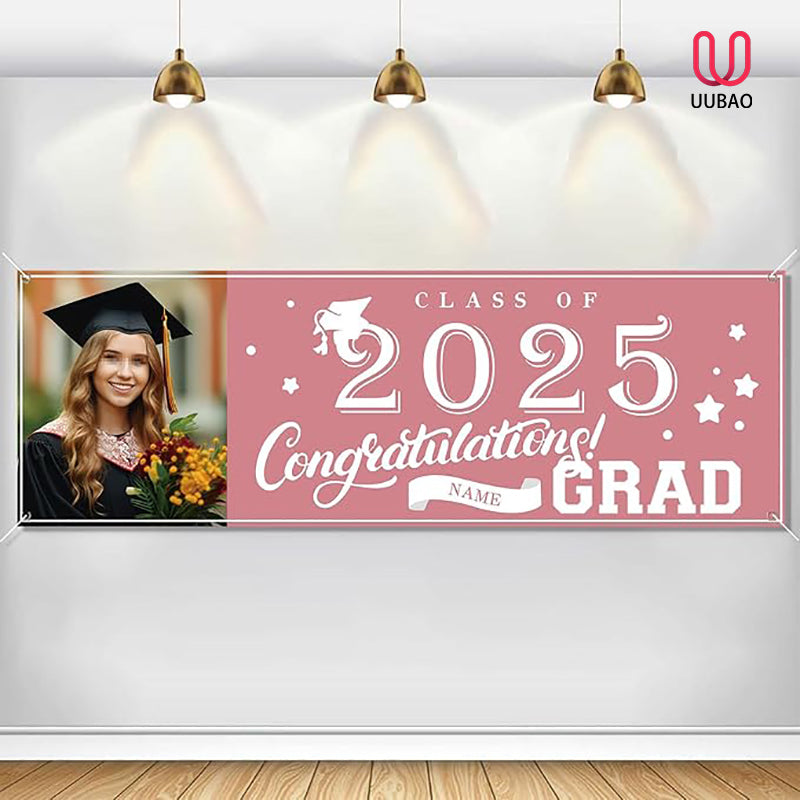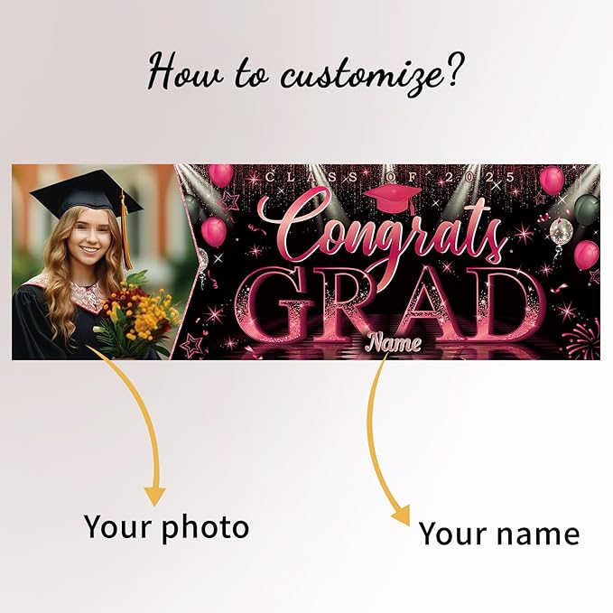 【Customize】Upload your favorite photos and preview the designs. Celebrate your graduation with our brand new 2025 Graduation door banner,add atmosphere to your graduation party.Featuring customizable size, photo and name for a truly personal touch.Just start from "customize now" on top button.