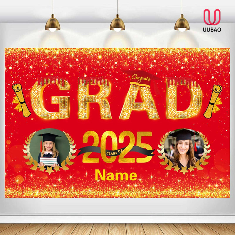 UUBAO Custom Graduation Party Decorations Personalization Banner Class of 2025 Backdrop (Red and Gold)