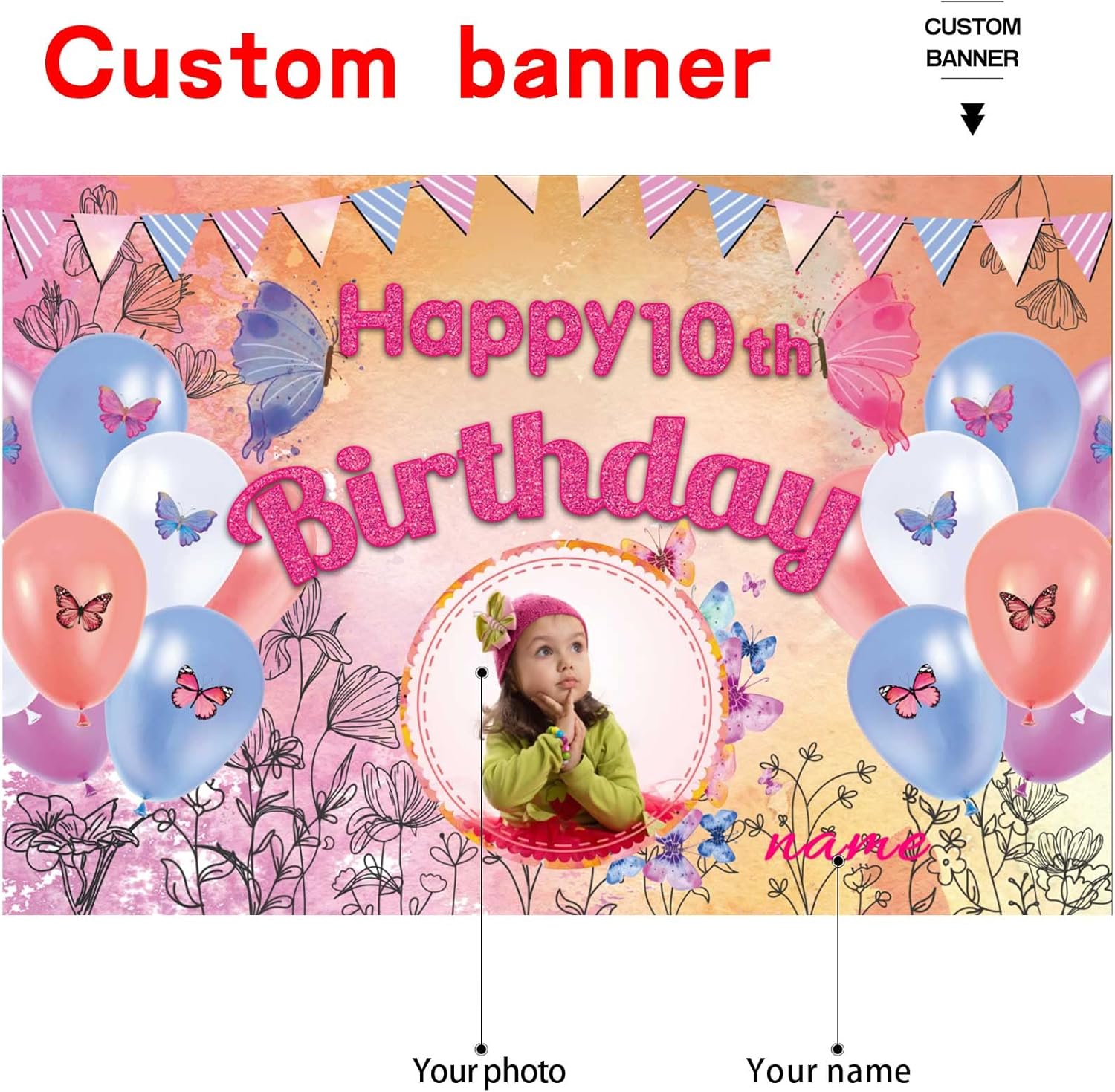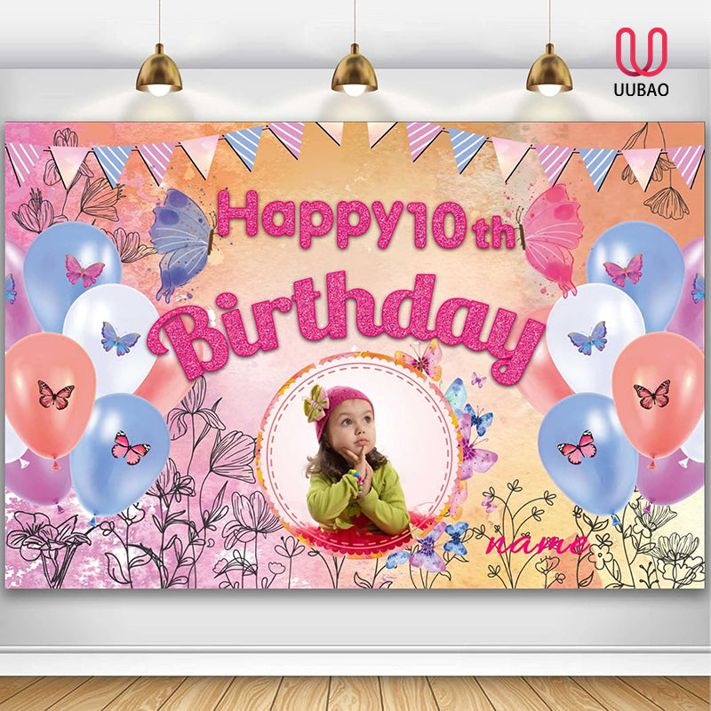 UUBAO Custom Butterfly Birthday Party Decorations Banner Backdrop Decorations Supplies