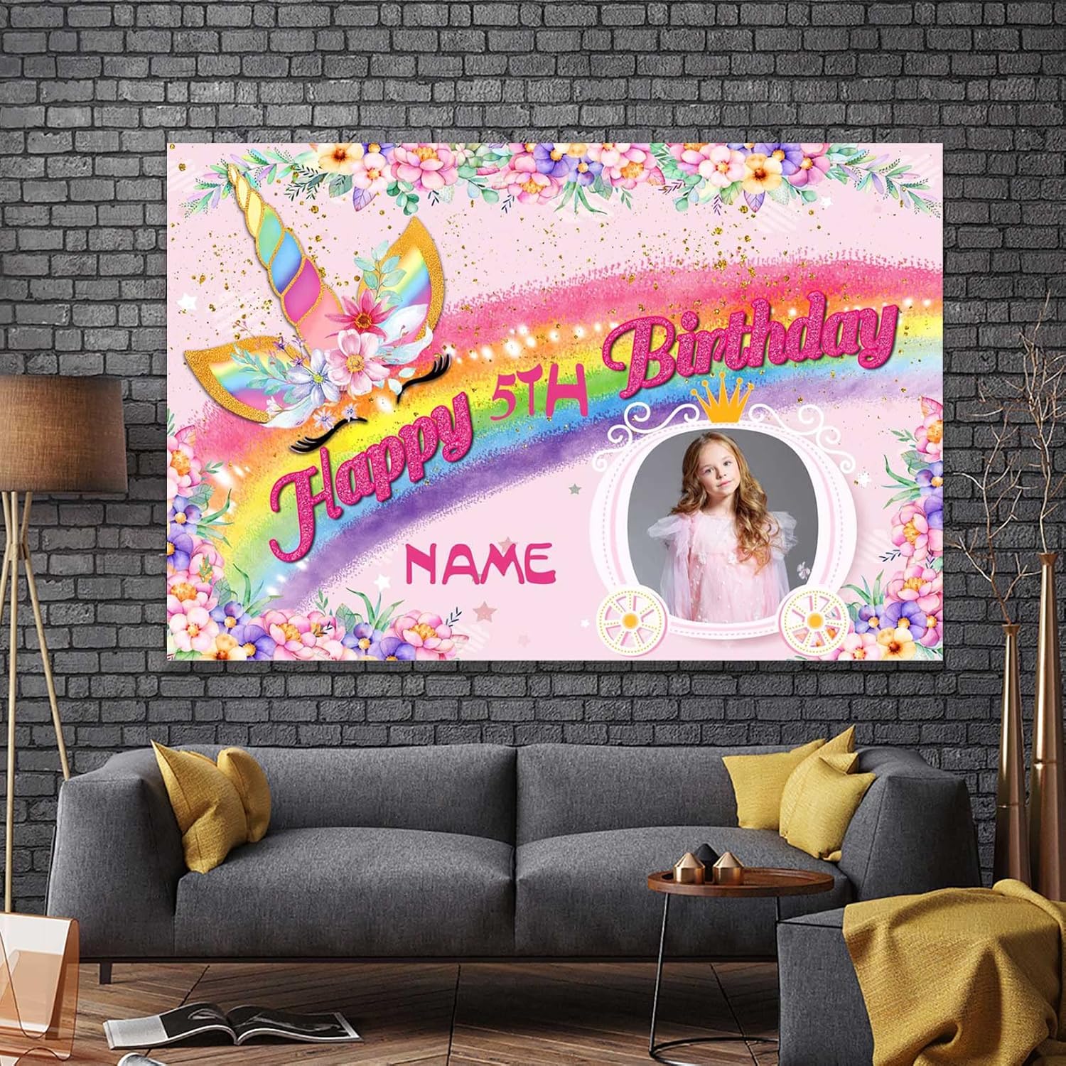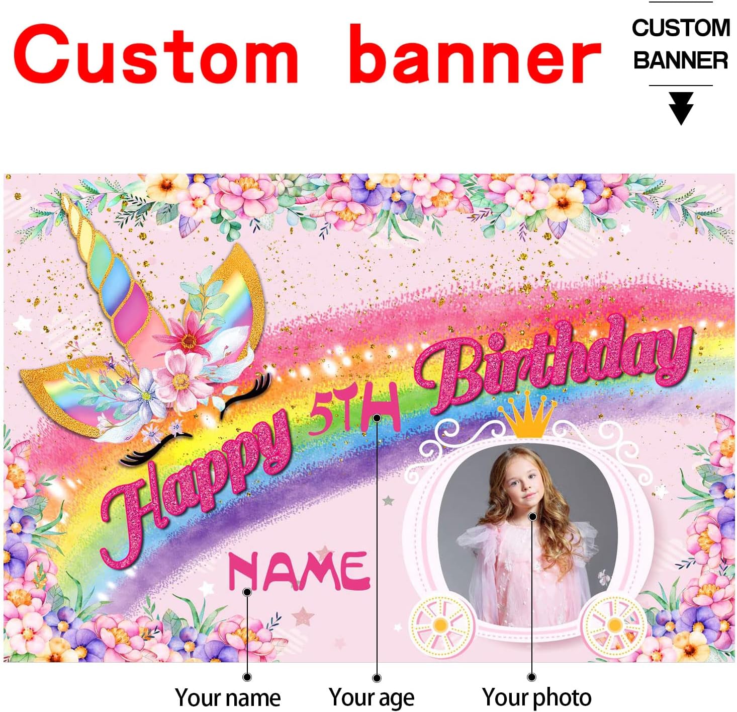 UUBAO Custom Unicorn Rainbow Happy Birthday Party Decorations Supplies Personalized Unicorn Rainbow Birthday Backdrop Banner