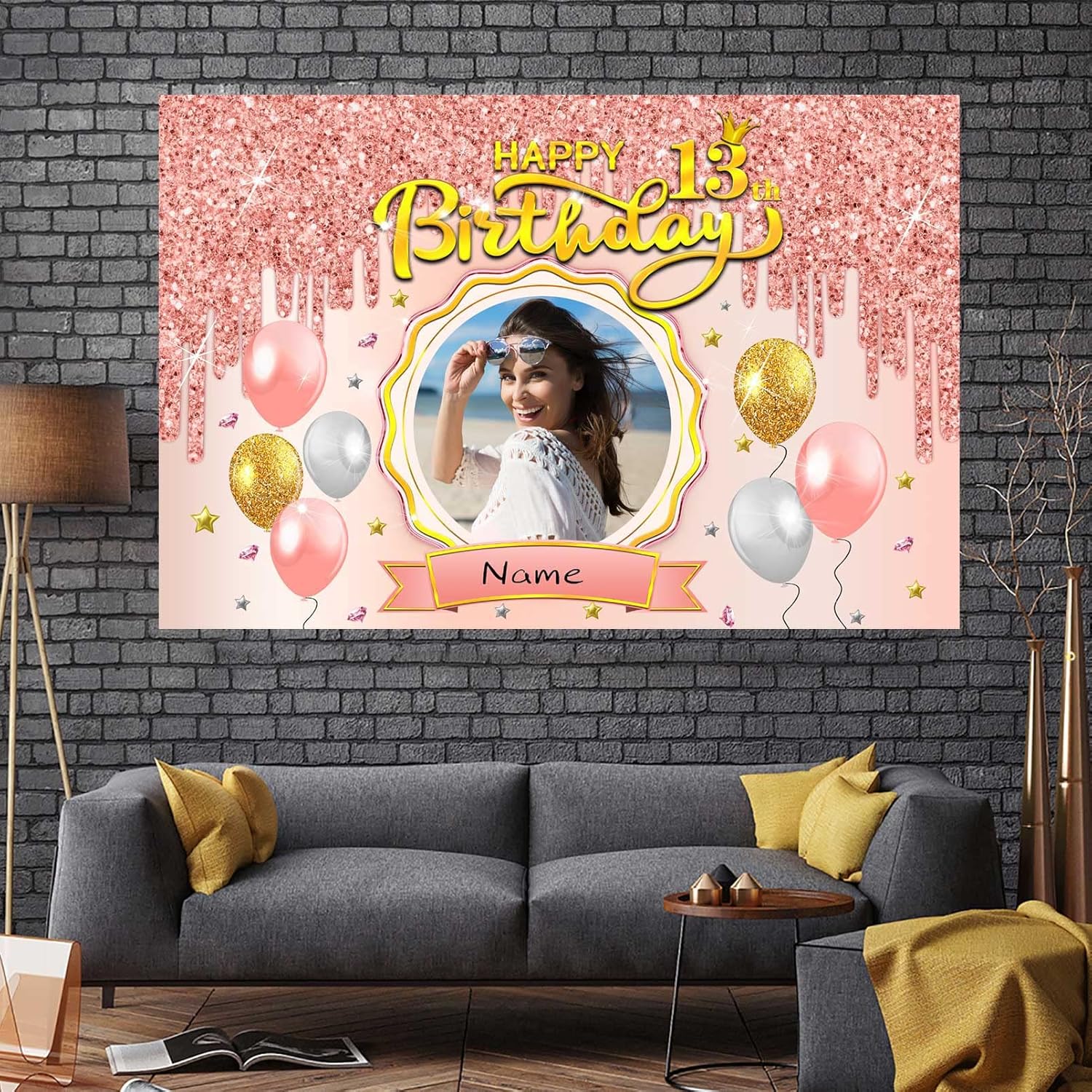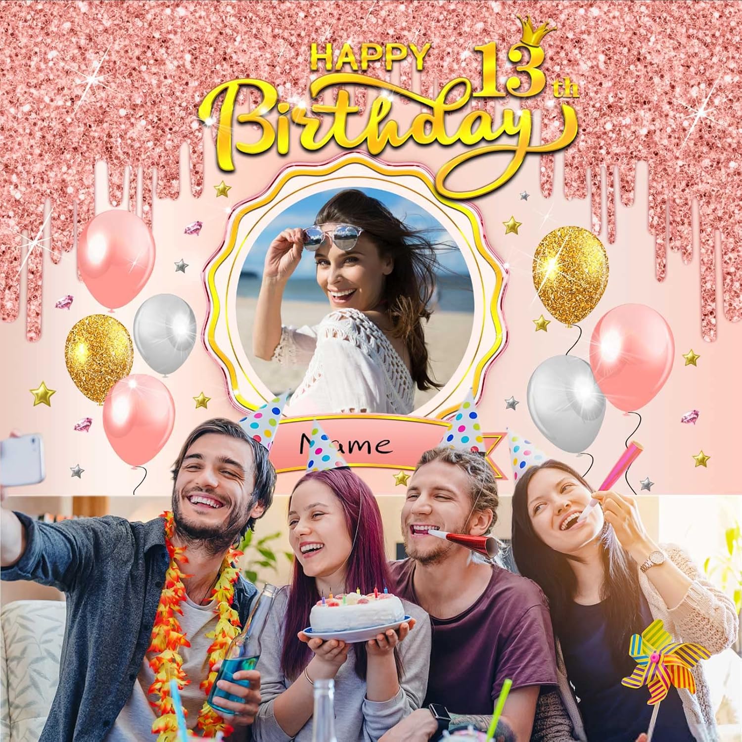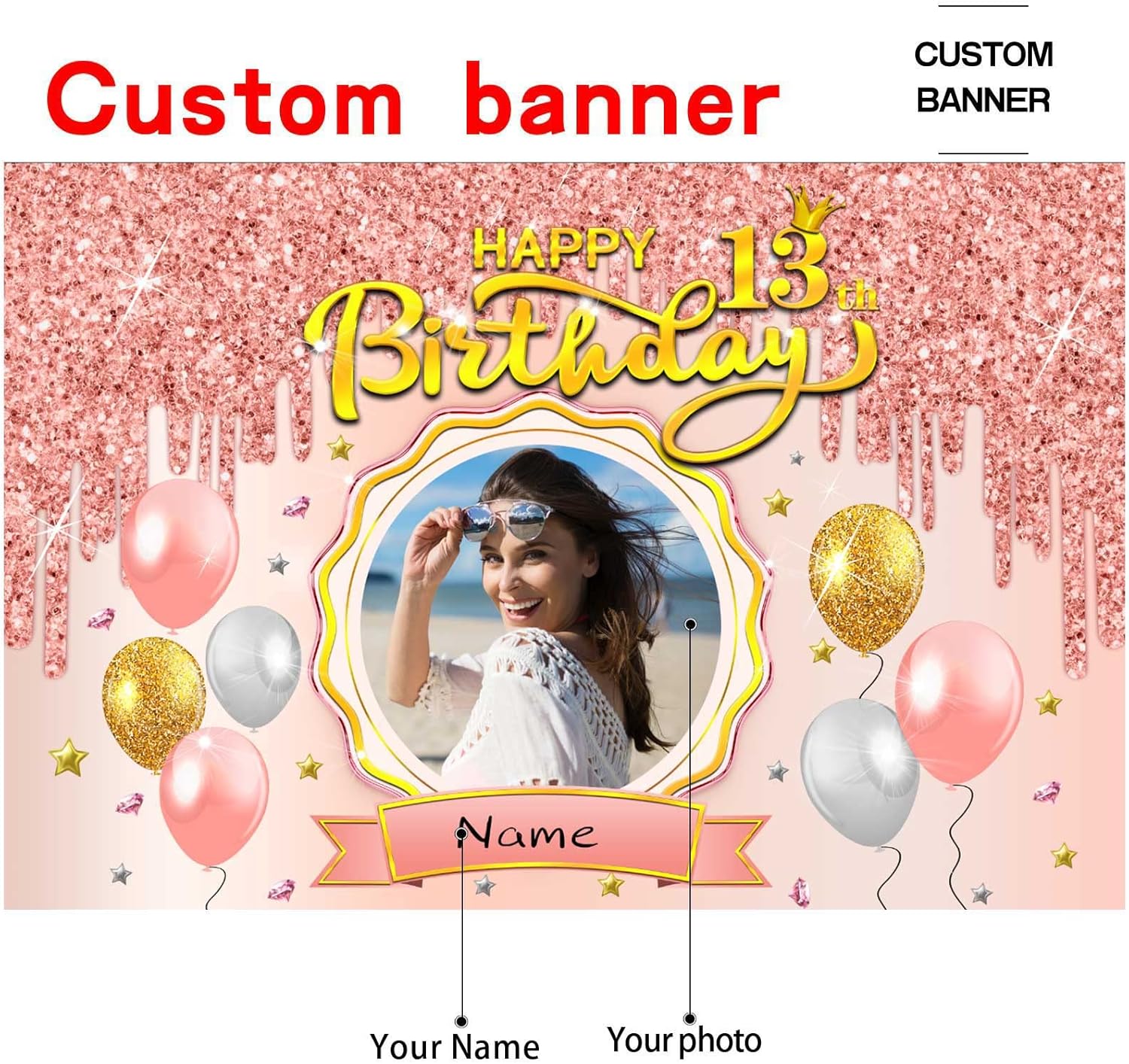 UUBAO Custom Rose Gold Happy Birthday Banner Backdrop Birthday Decorations Party Supplies for Girl Women