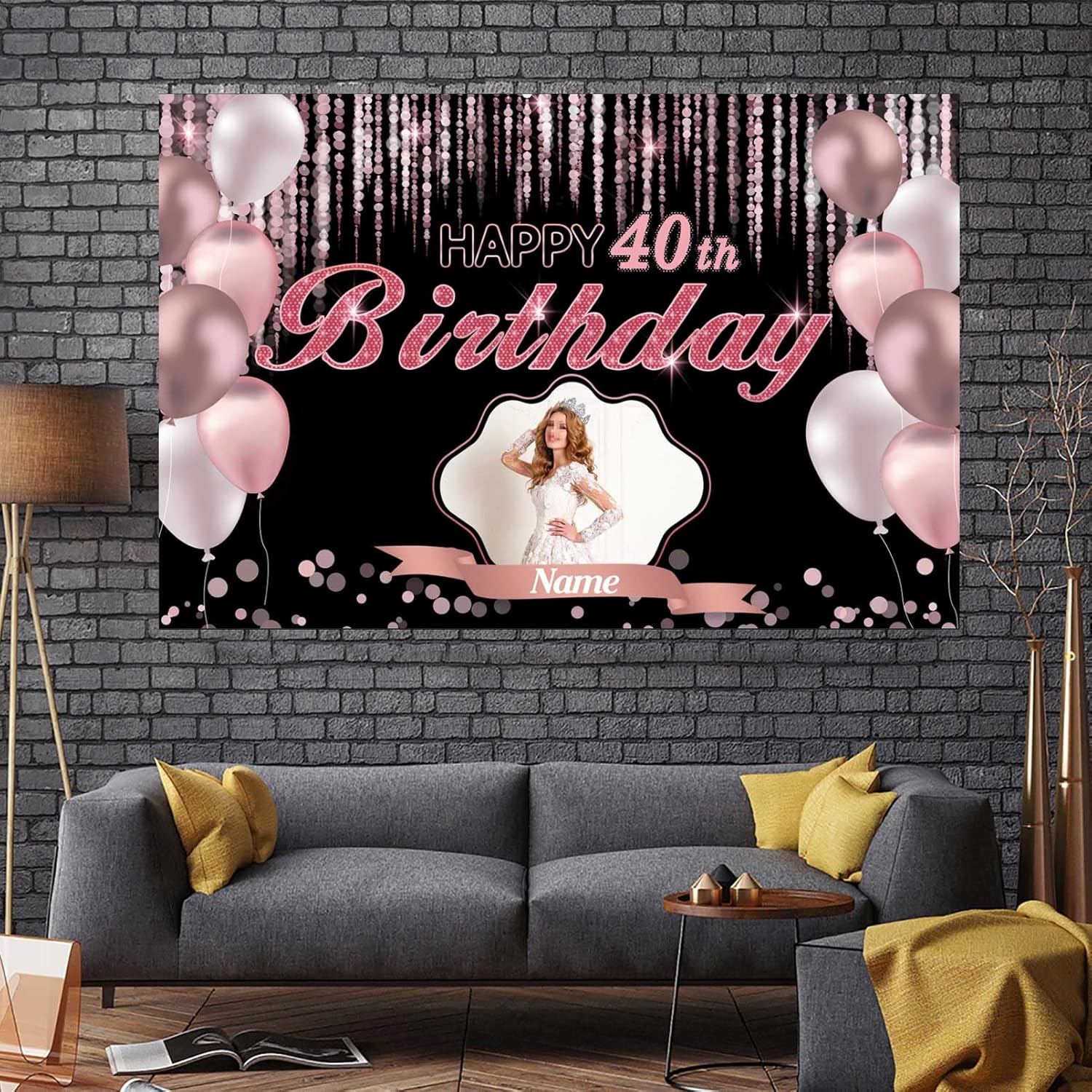 UUBAO Custom Rose Gold Pink Theme Birthday Banner for Party Happy Birthday Backdrop Decoration Personalized with Name and Photo