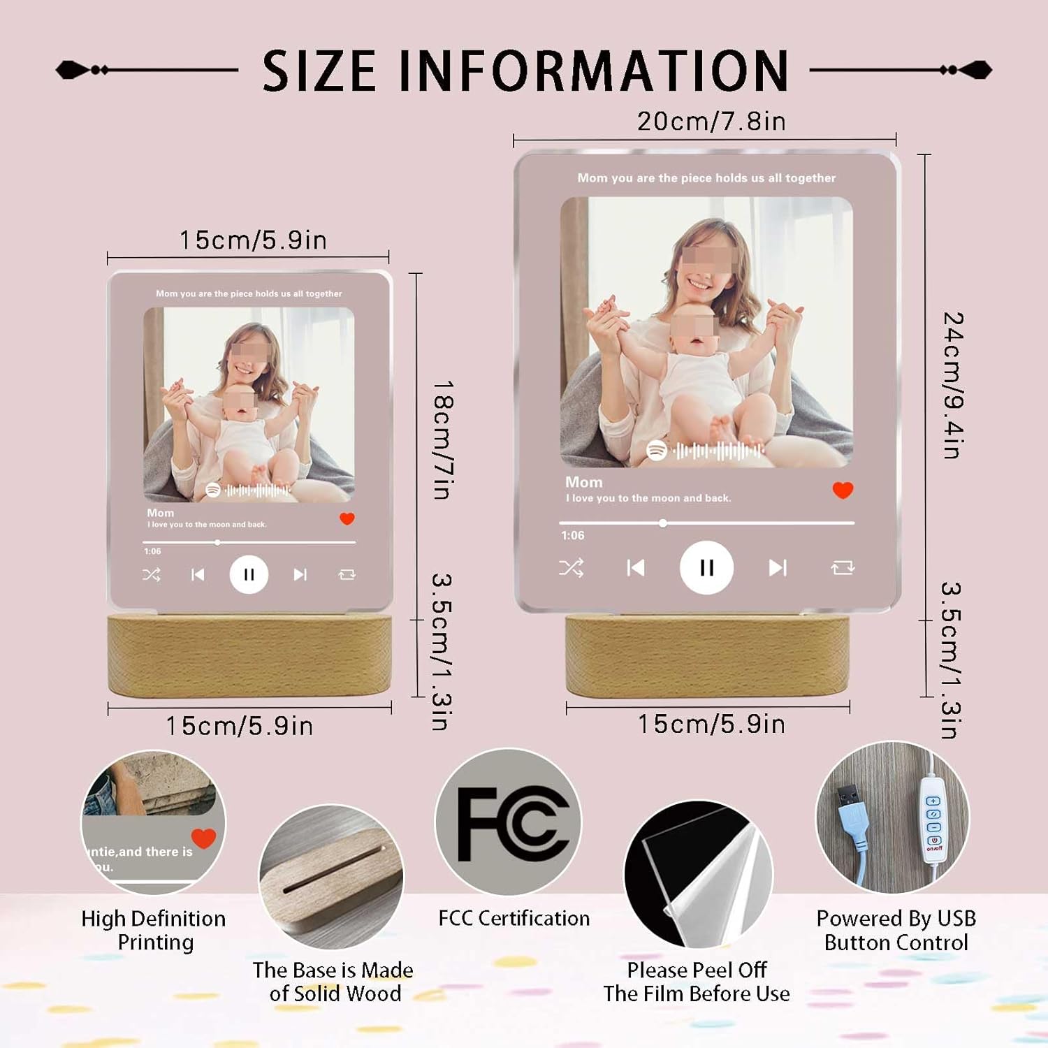 UUBAO Customized Acrylic LED Night Light Lamp Personalized Mother's Day Gifts Plaque Gifts Custom Photo for Mom
