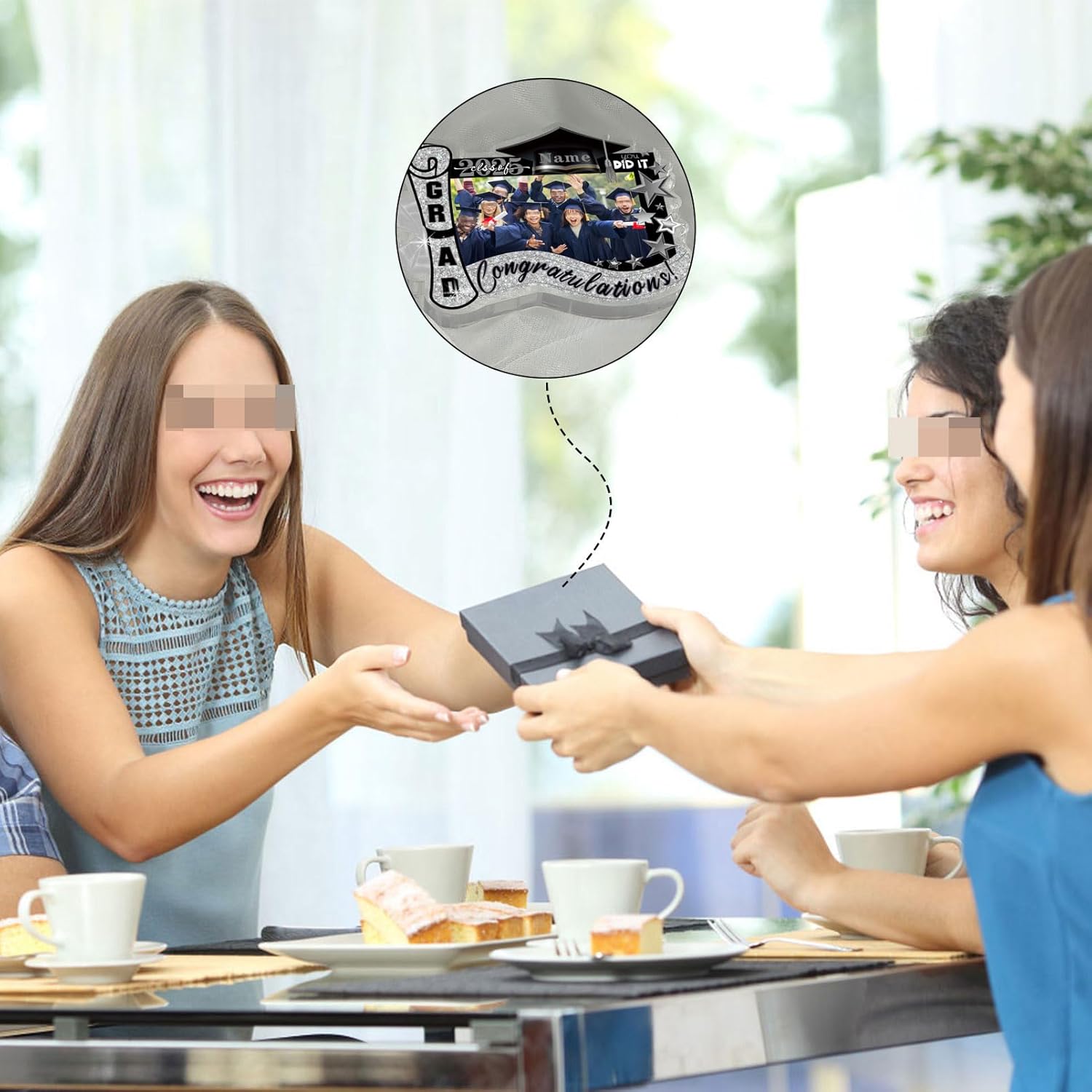 UUBAO Customized Graduation Plaque with Photo Crystal Desktop Keepsake Gift (Black and Silver)