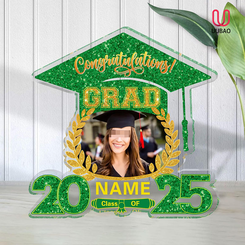 UUBAO Customized Graduation Plaque with Photo Crystal Desktop Keepsake Gift (Dark Green)
