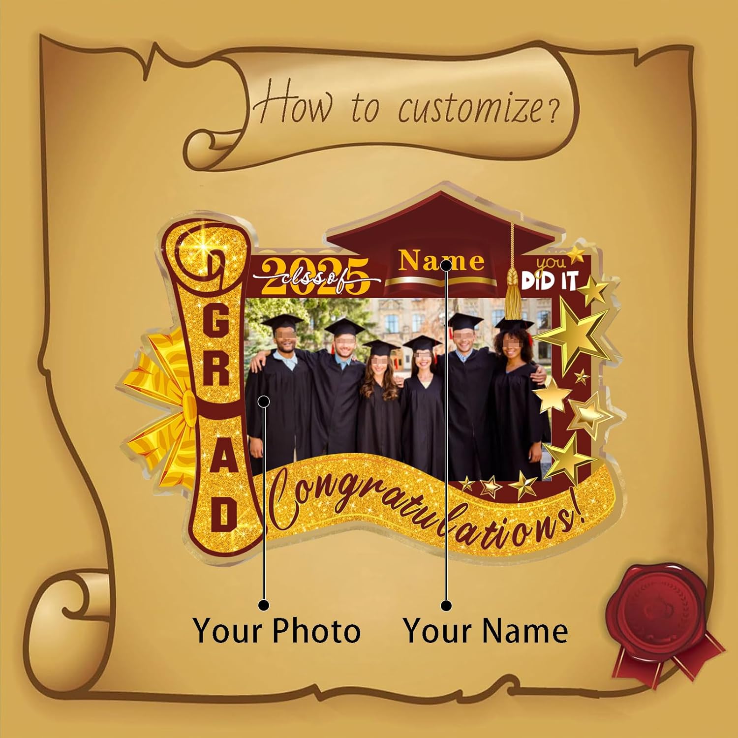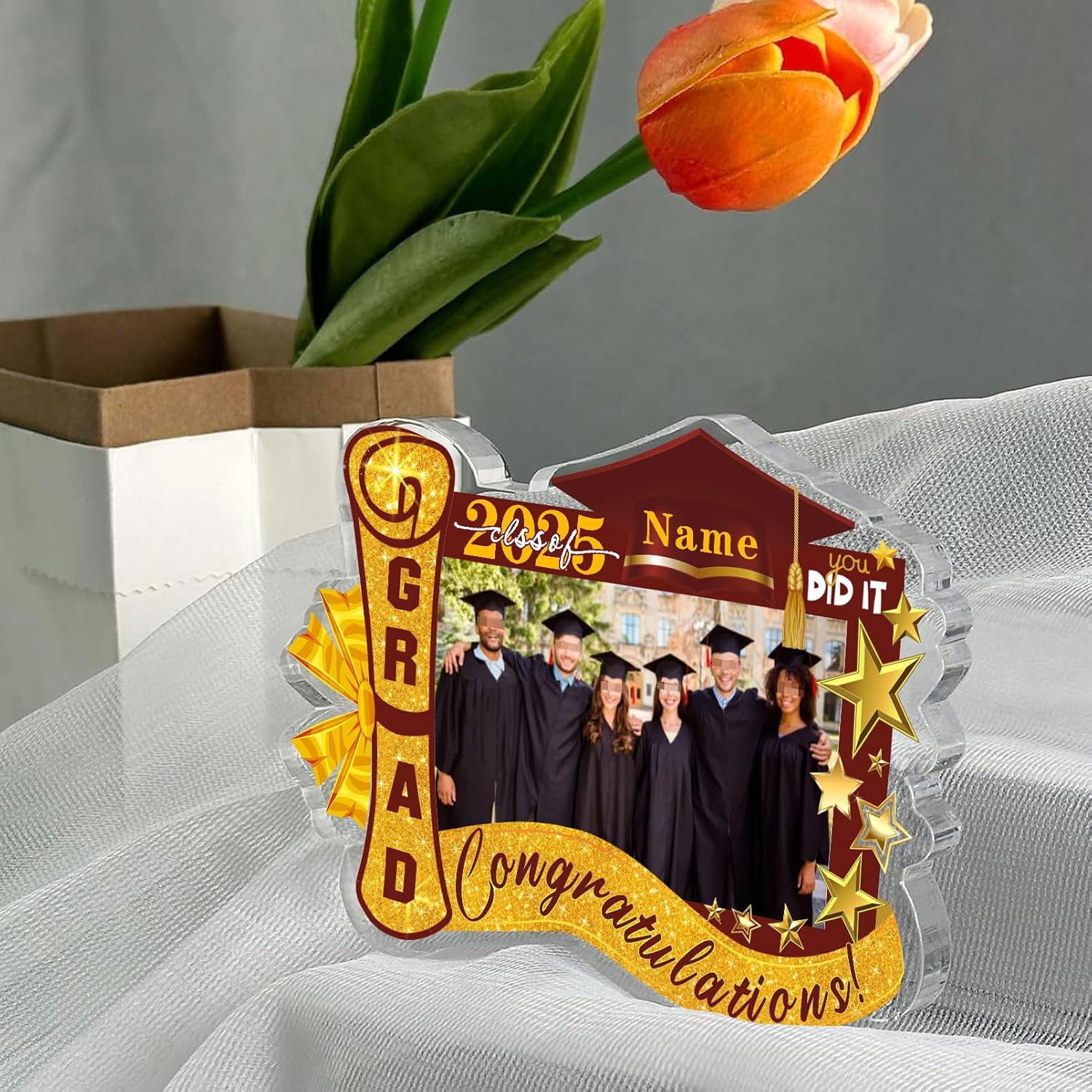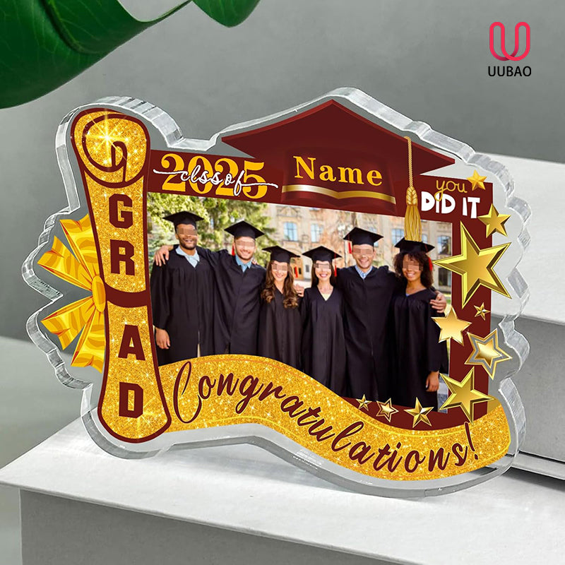 UUBAO Customized Graduation Plaque with Photo Crystal Desktop Keepsake Gift (Maroon)