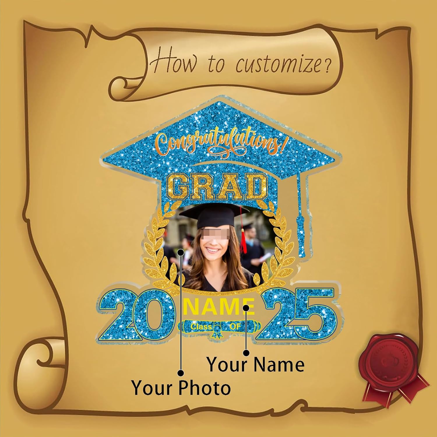 UUBAO Customized Graduation Plaque with Photo Crystal Desktop Keepsake Gift (Sky Blue)