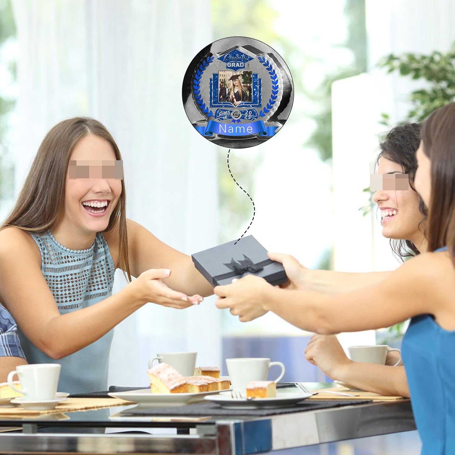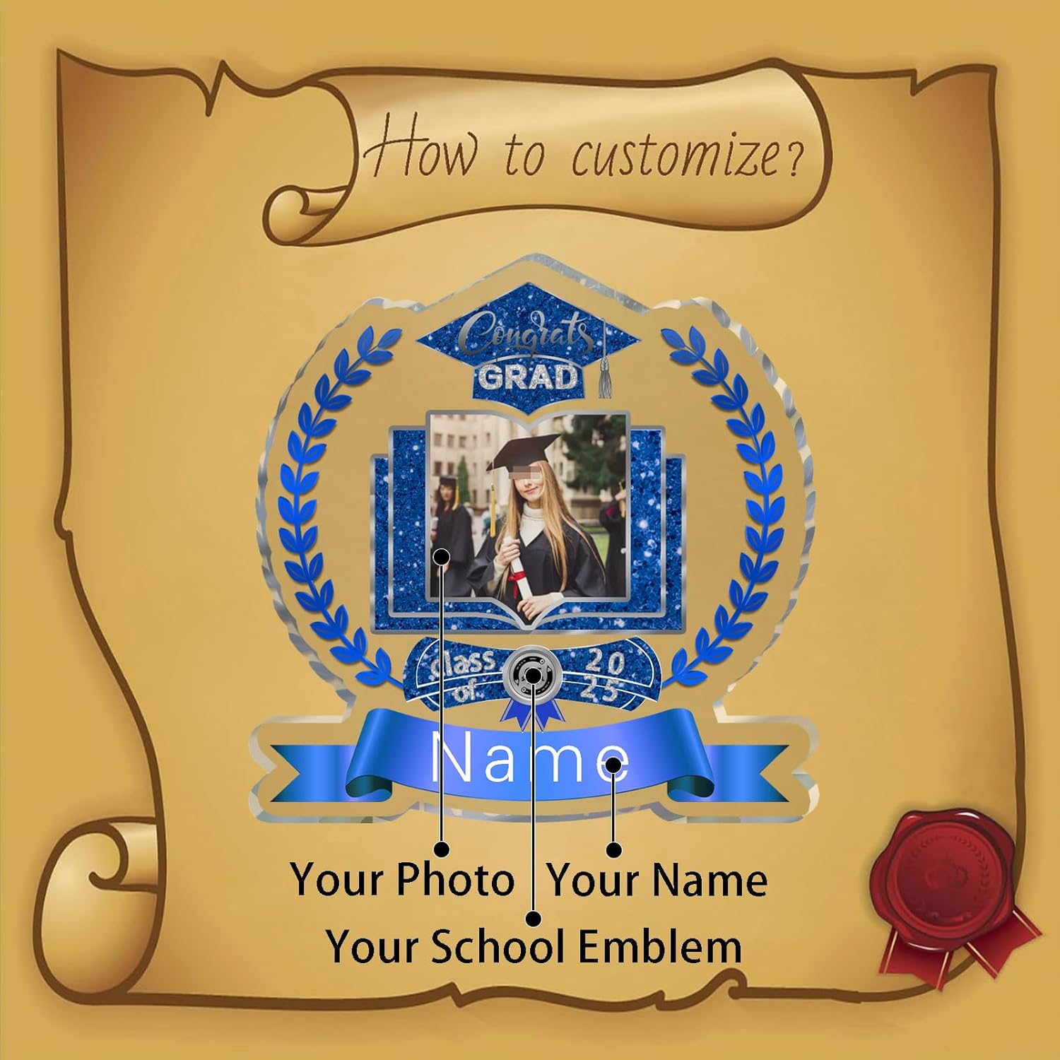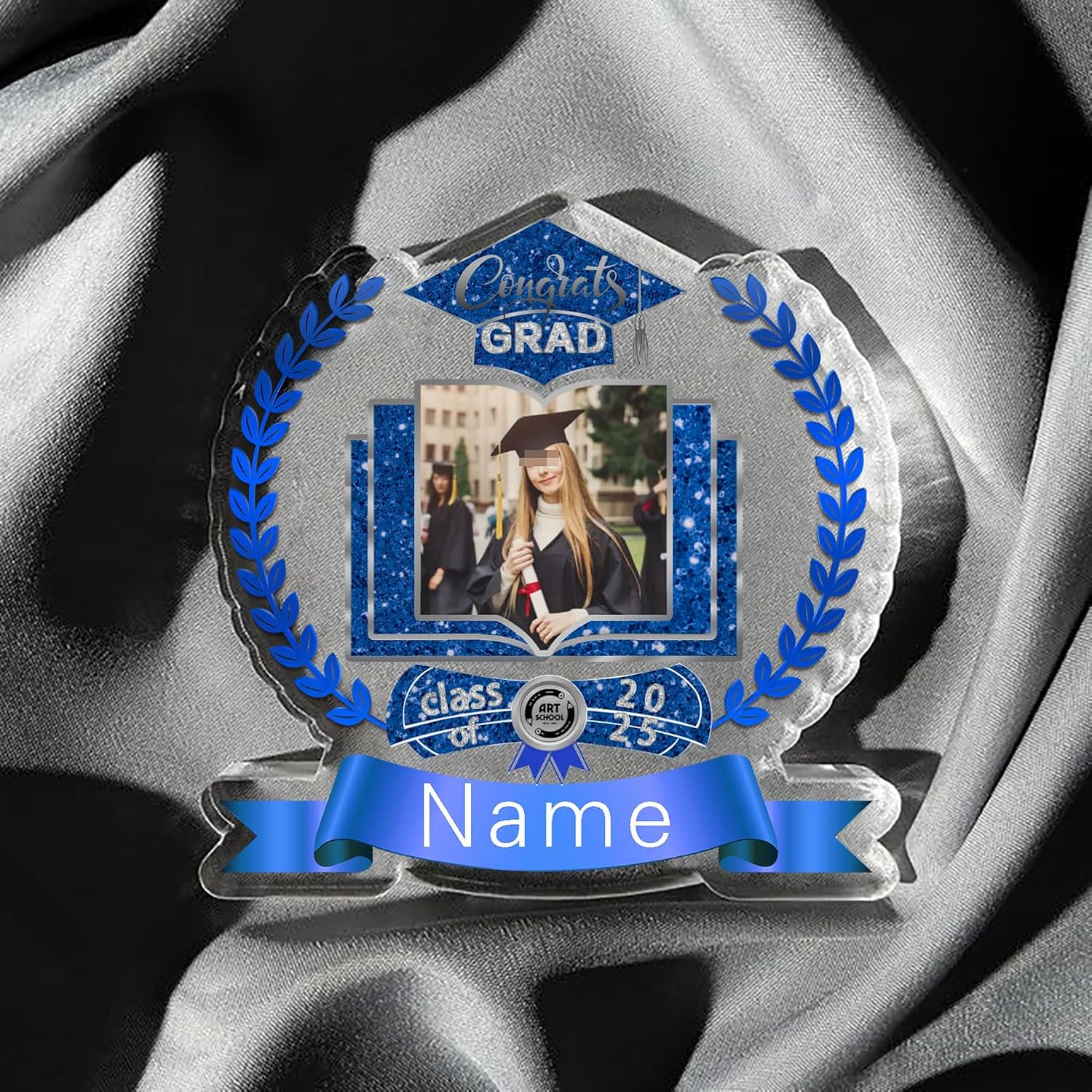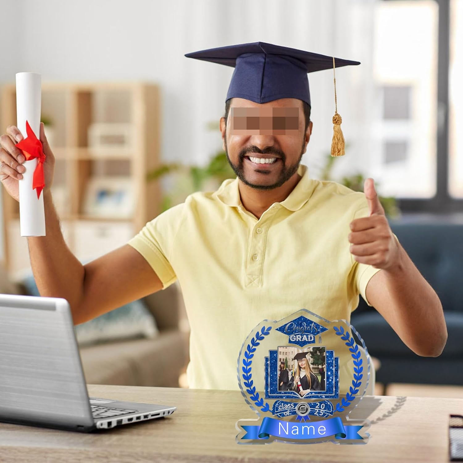 UUBAO Customized Graduation Plaque with Single Picture Custom Picture 2025 Congrats Grad Crystal Desktop Farewell Keepsake Gift (Blue and Silver)