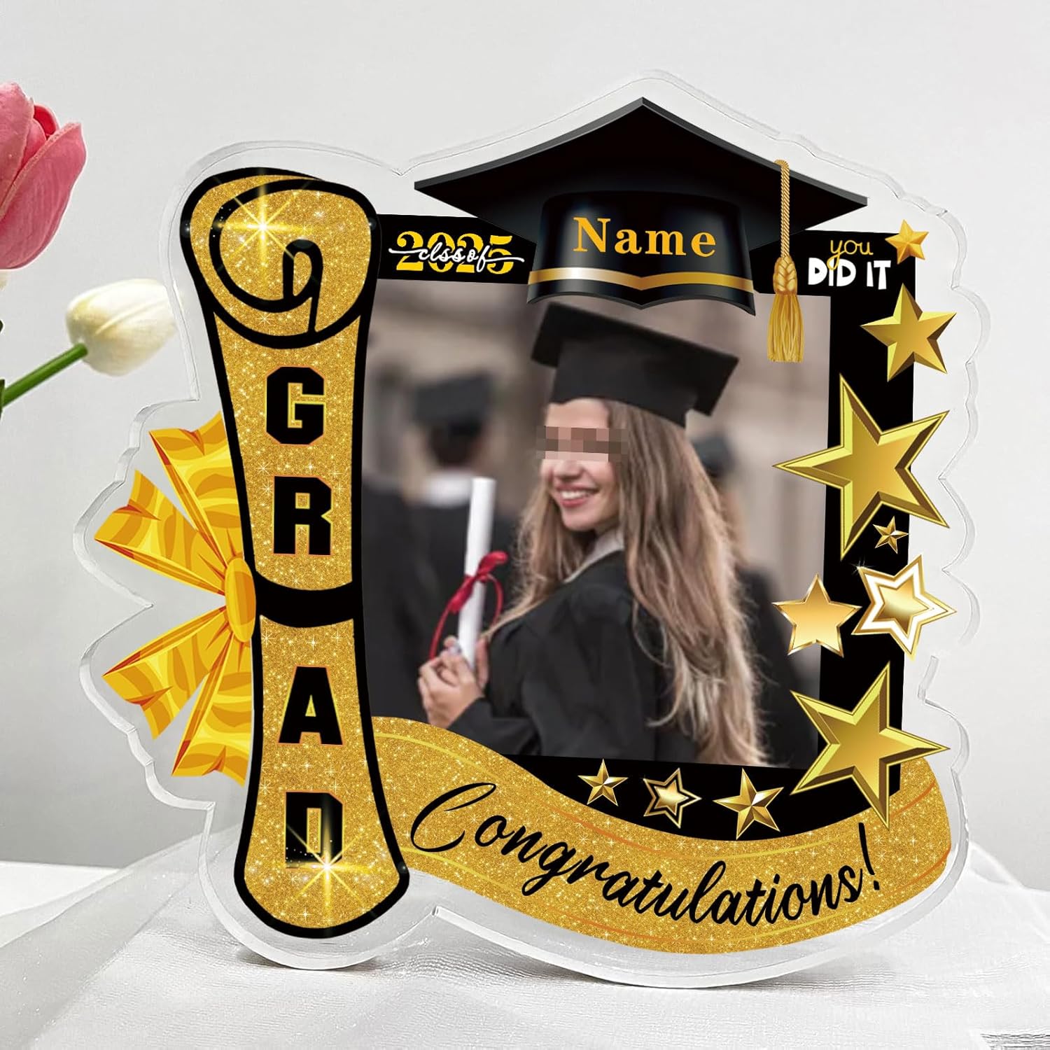 UUBAO Customized Graduation Plaque with Single Picture Custom Picture 2025 Congrats Grad Crystal Desktop Farewell Keepsake Gift (Yellow)