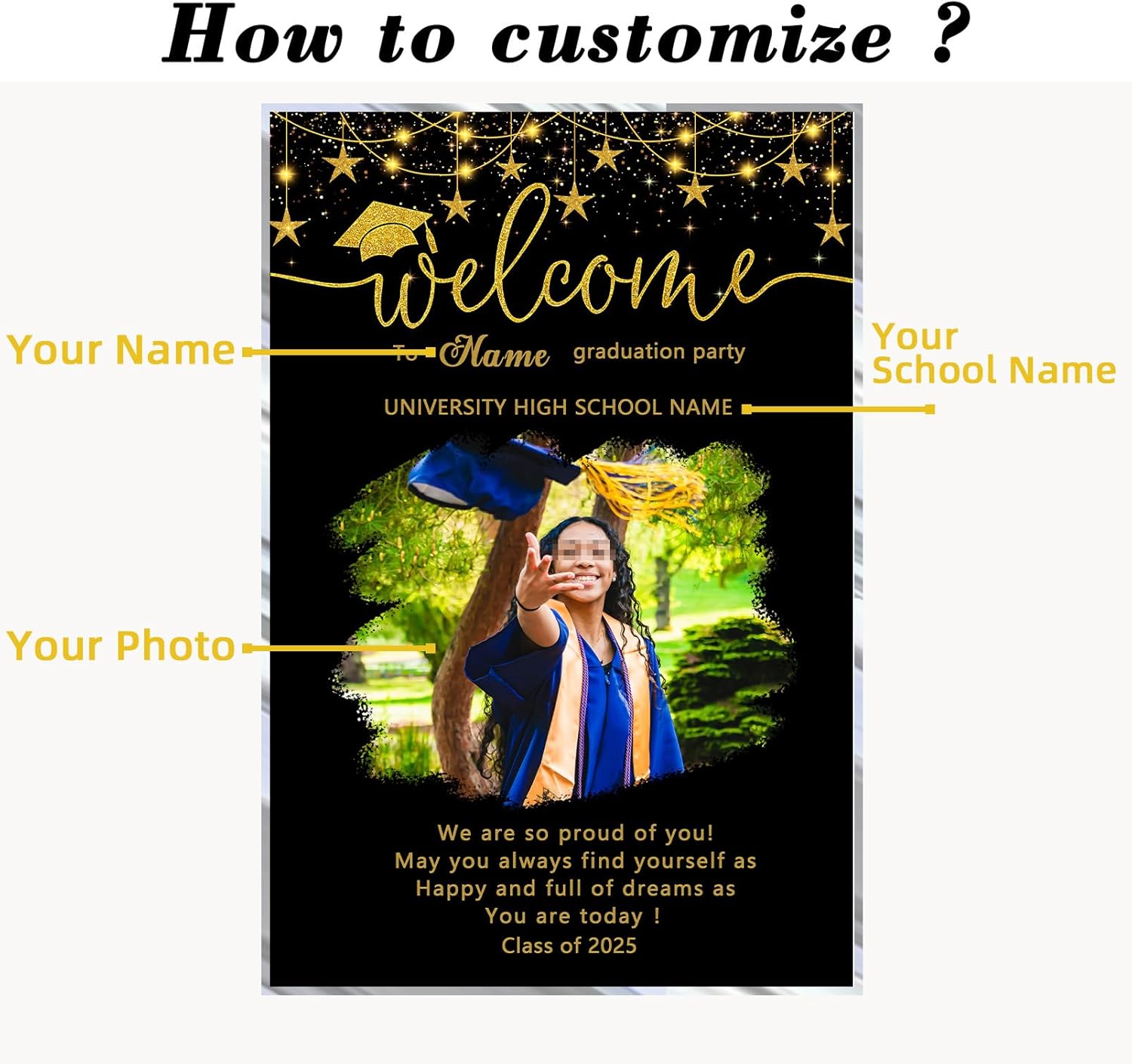 UUBAO Customized Welcome Sign for Graduation Party Personalized Acrylic Sign with Photo Name Class of 2025 Graduation Decor(Black and Gold)