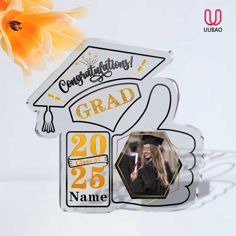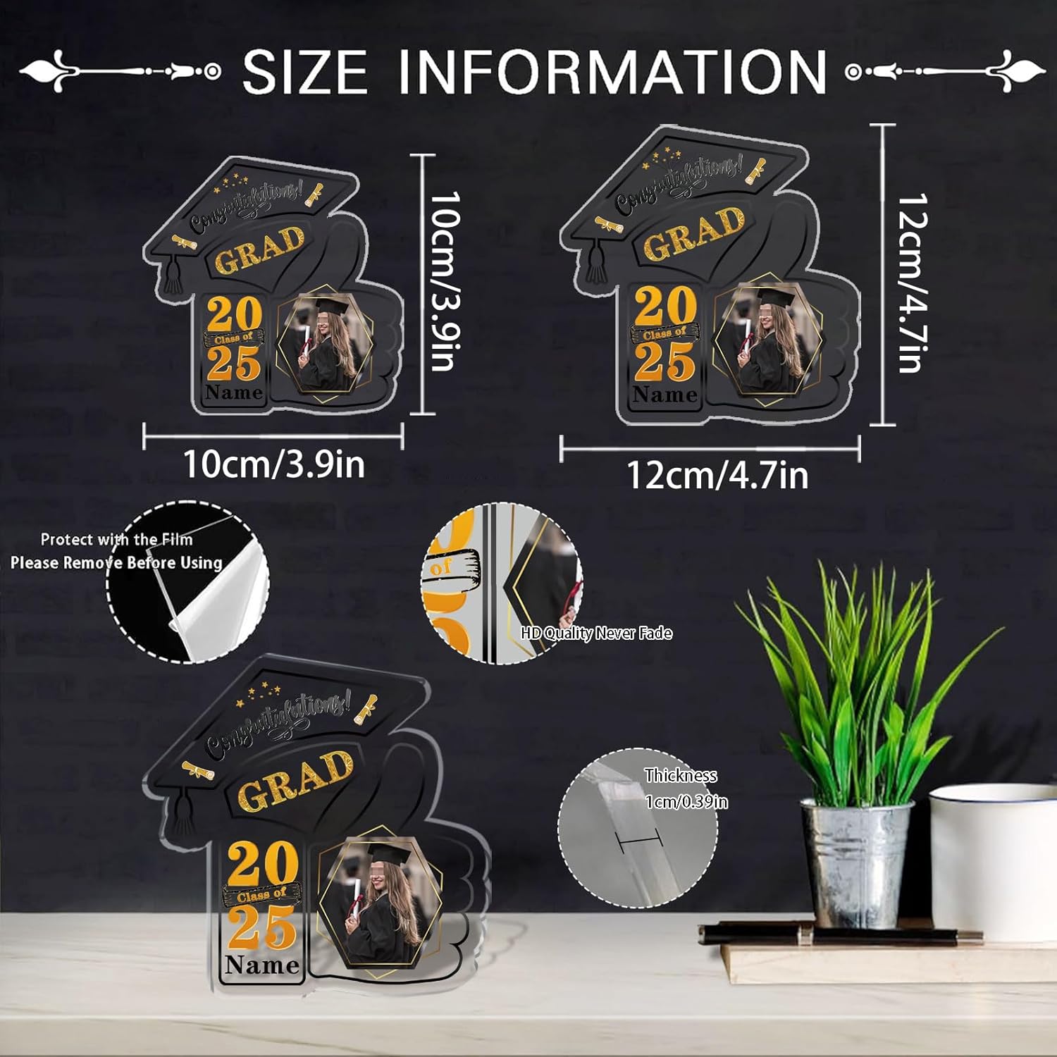 UUBAO Personalized Graduation Decorative Signs Plaques Class of 2024 Desk Paperweight Farewell Memorial Gift with Photo(Black and Gold)