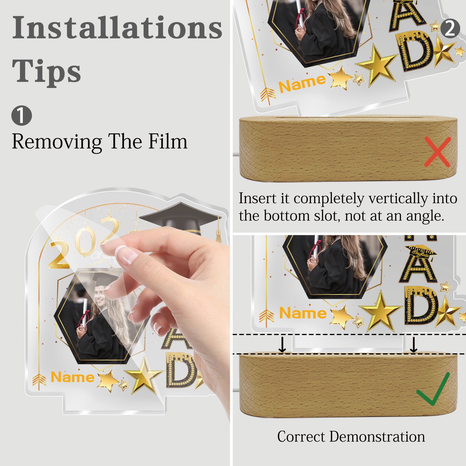 • 【Custom】Our night lights support customization, and you can customize photos, names,according to your own needs. Customize this unique graduation gift for the person you love, imagine their happy faces when they see this special graduation gift!