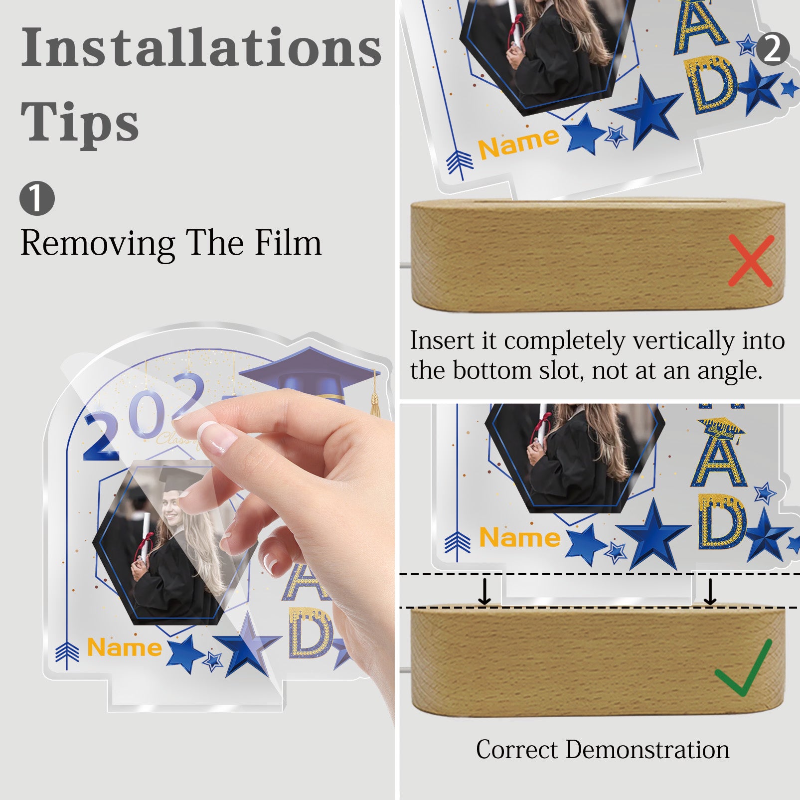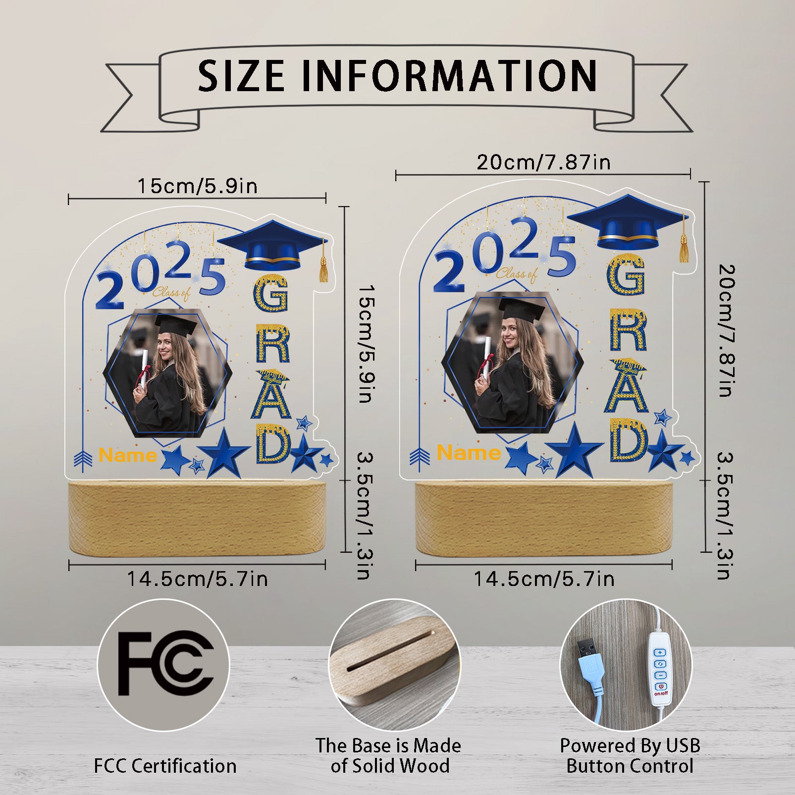 UUBAO Graduation Gifts Personalized Night Light Class of 2025 Custom Photo Name Gifts for Him Her Gifts for College, High School (Blue and Gold)