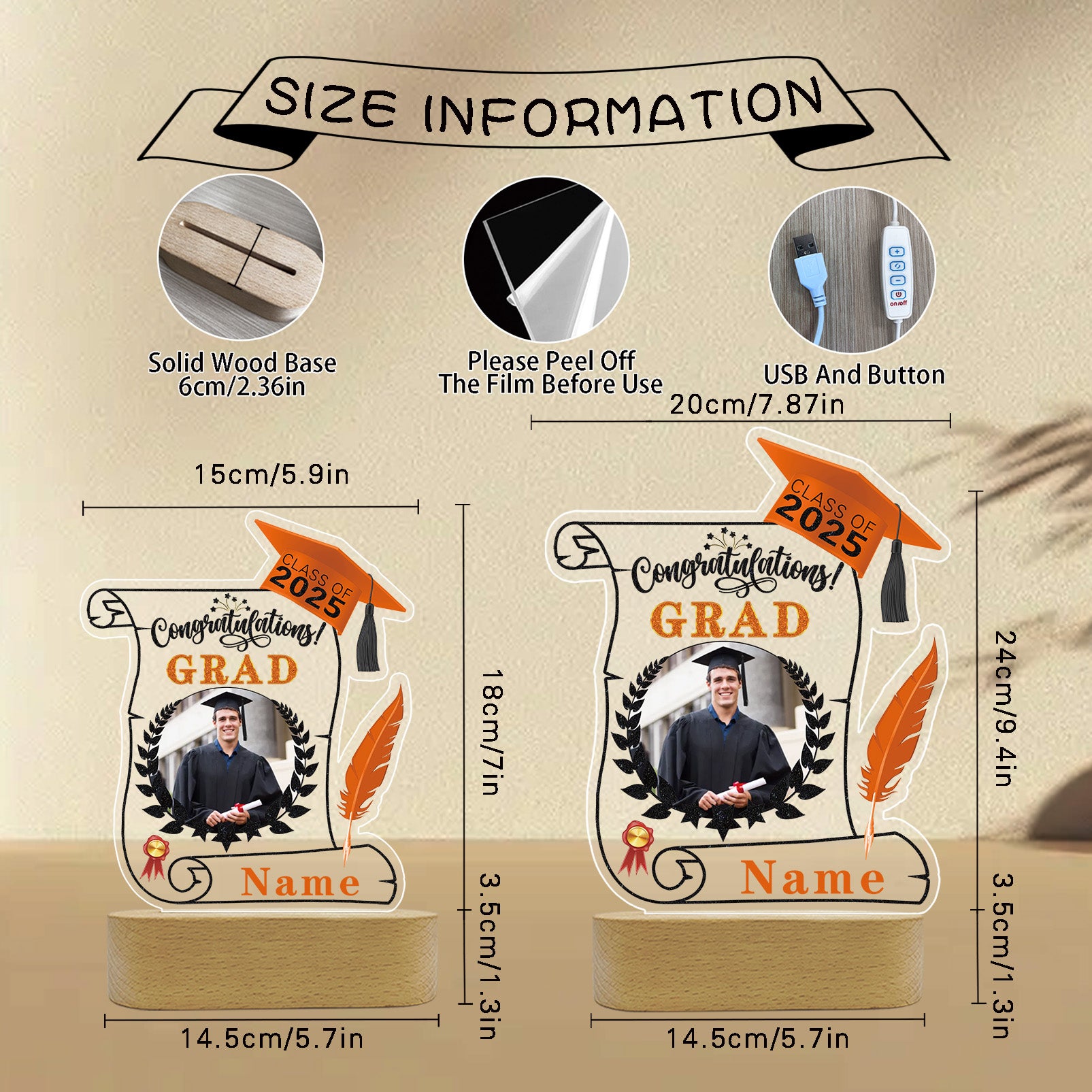 UUBAO Personalized Night Light Class of 2025 Graduation Gift for Junior High School College Teachers and Classmates(Orange)