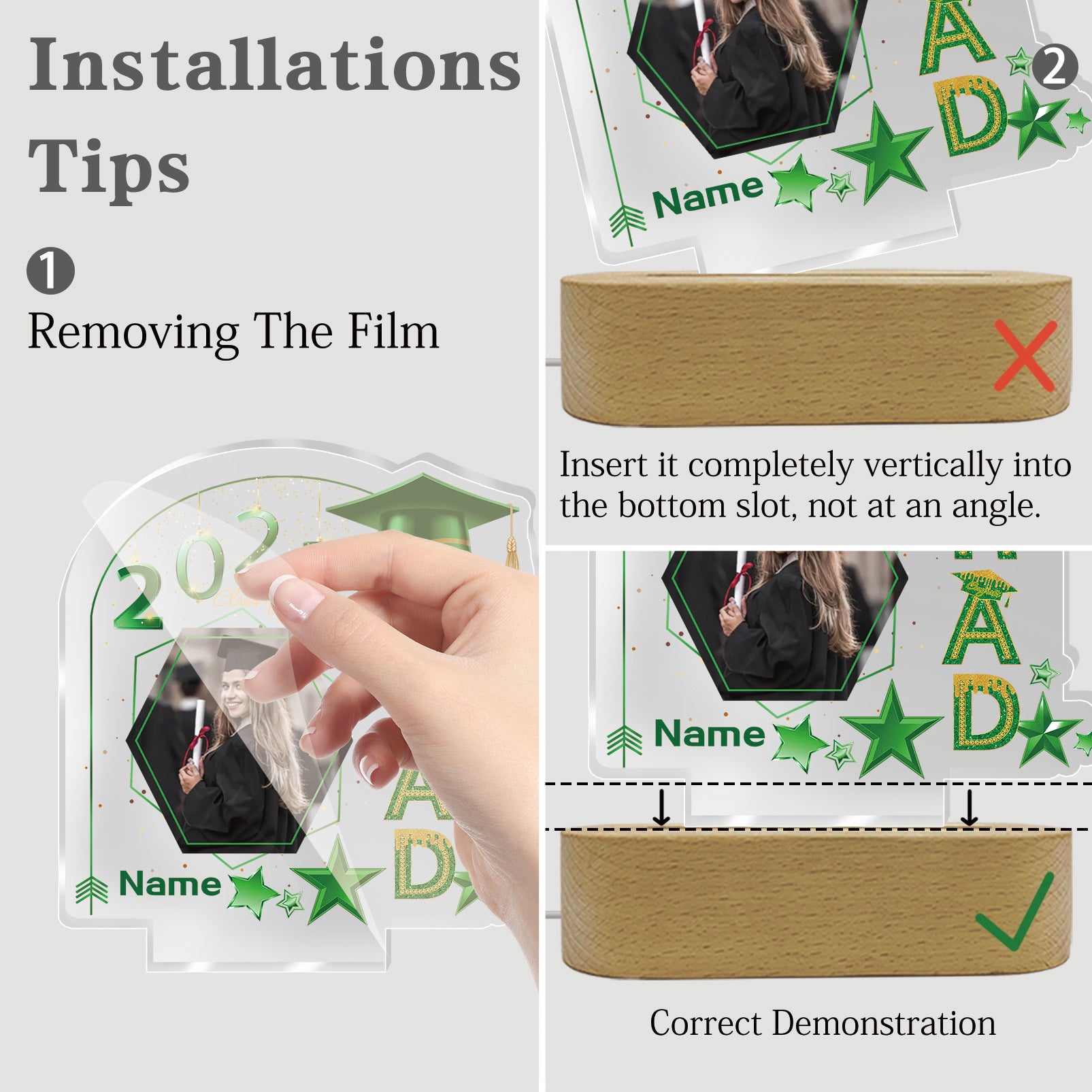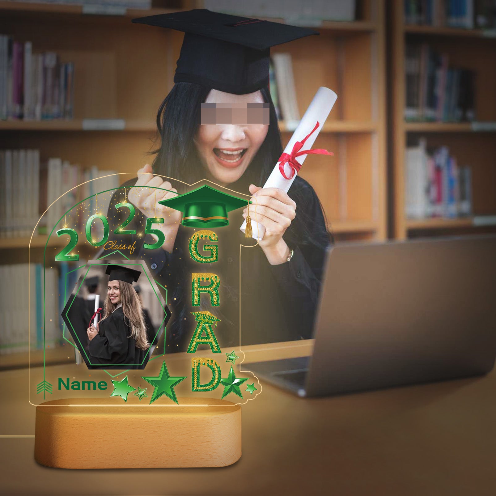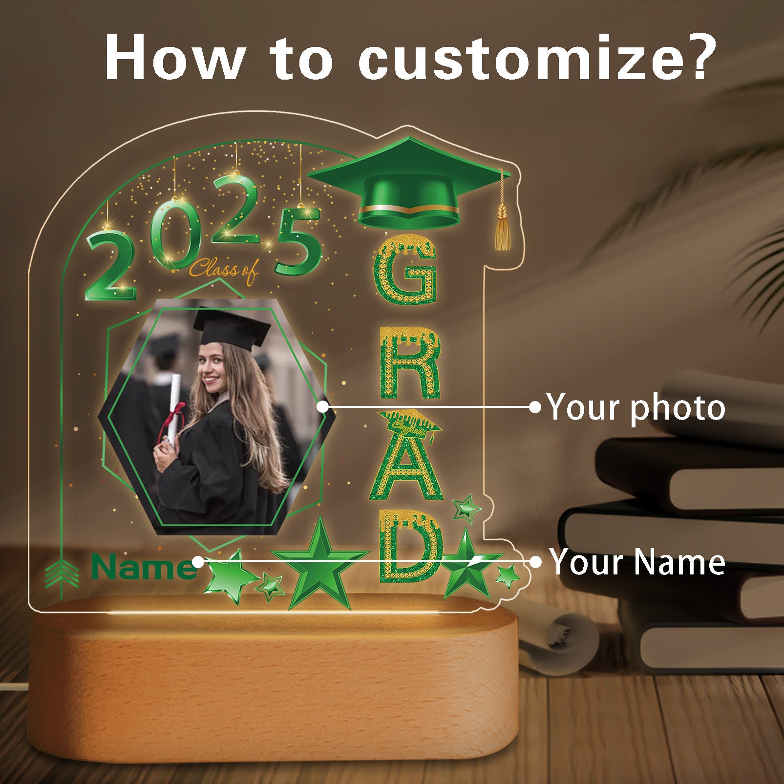 UUBAO Graduation Gifts Personalized Night Light Class of 2025 Custom Photo Name Gifts for Him Her Gifts for College, High School (Dark Green)