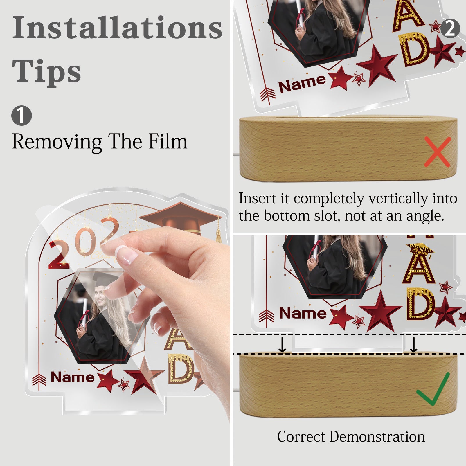 UUBAO Graduation Gifts Personalized Night Light Class of 2025 Custom Photo Name Gifts for Him Her Gifts for College, High School (Maroon)
