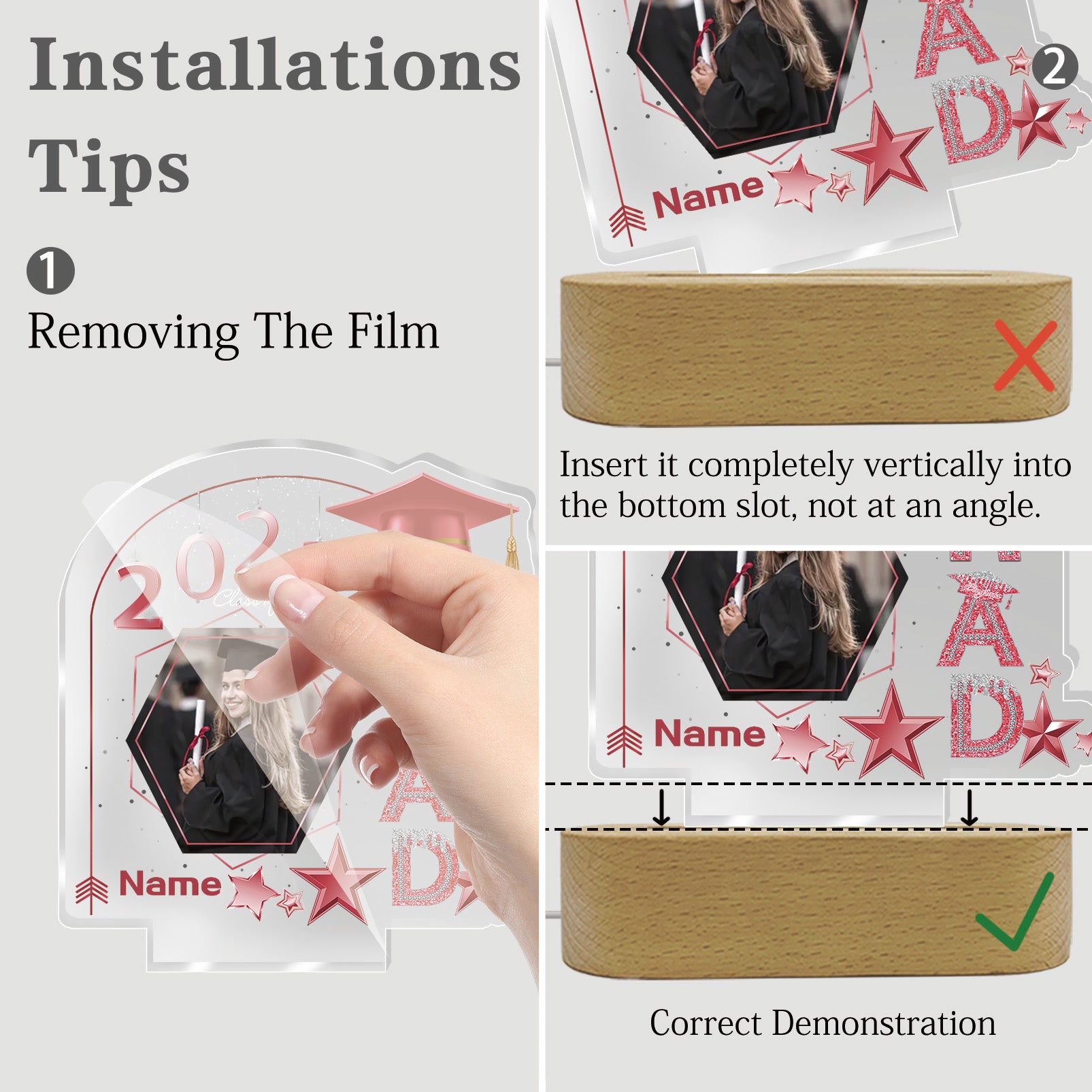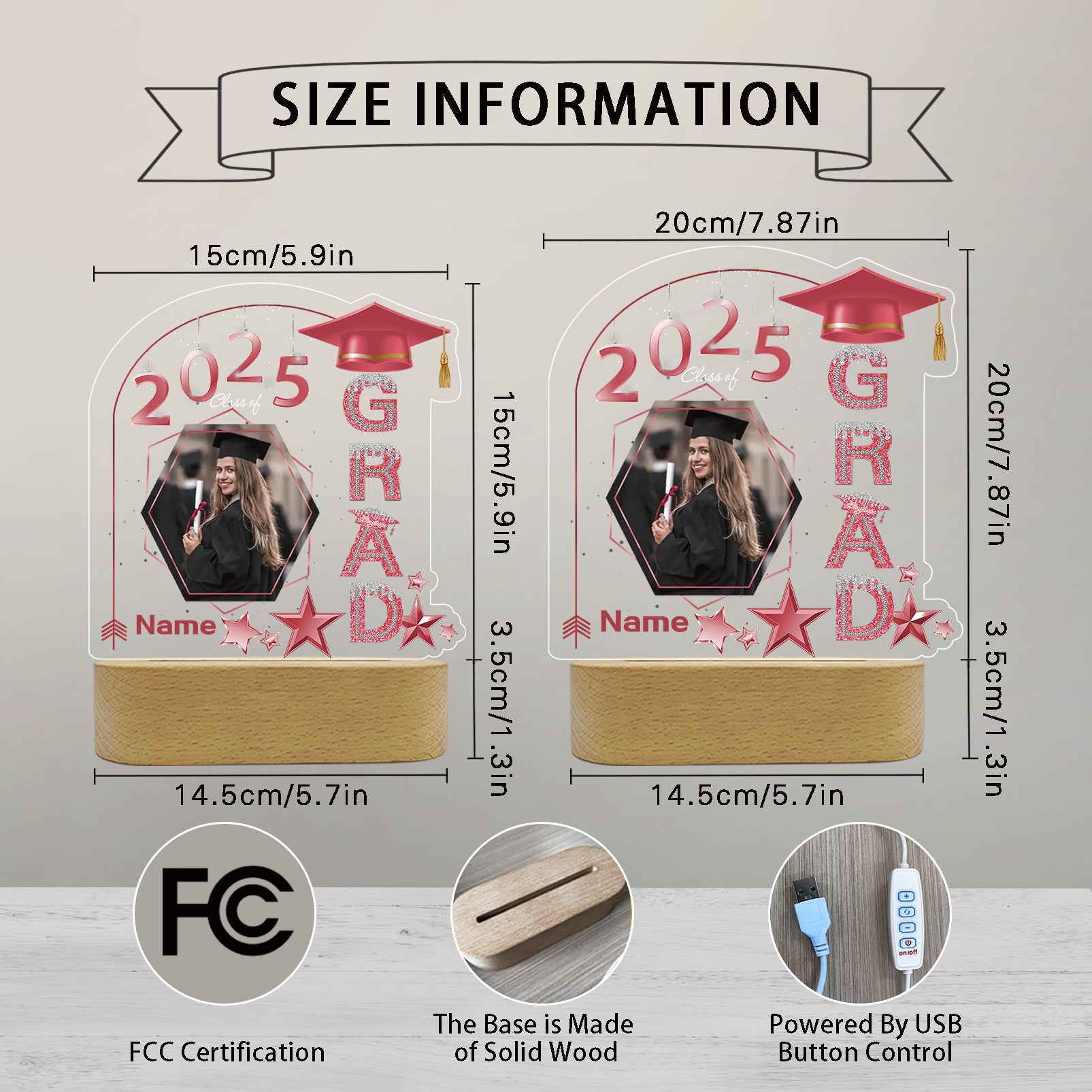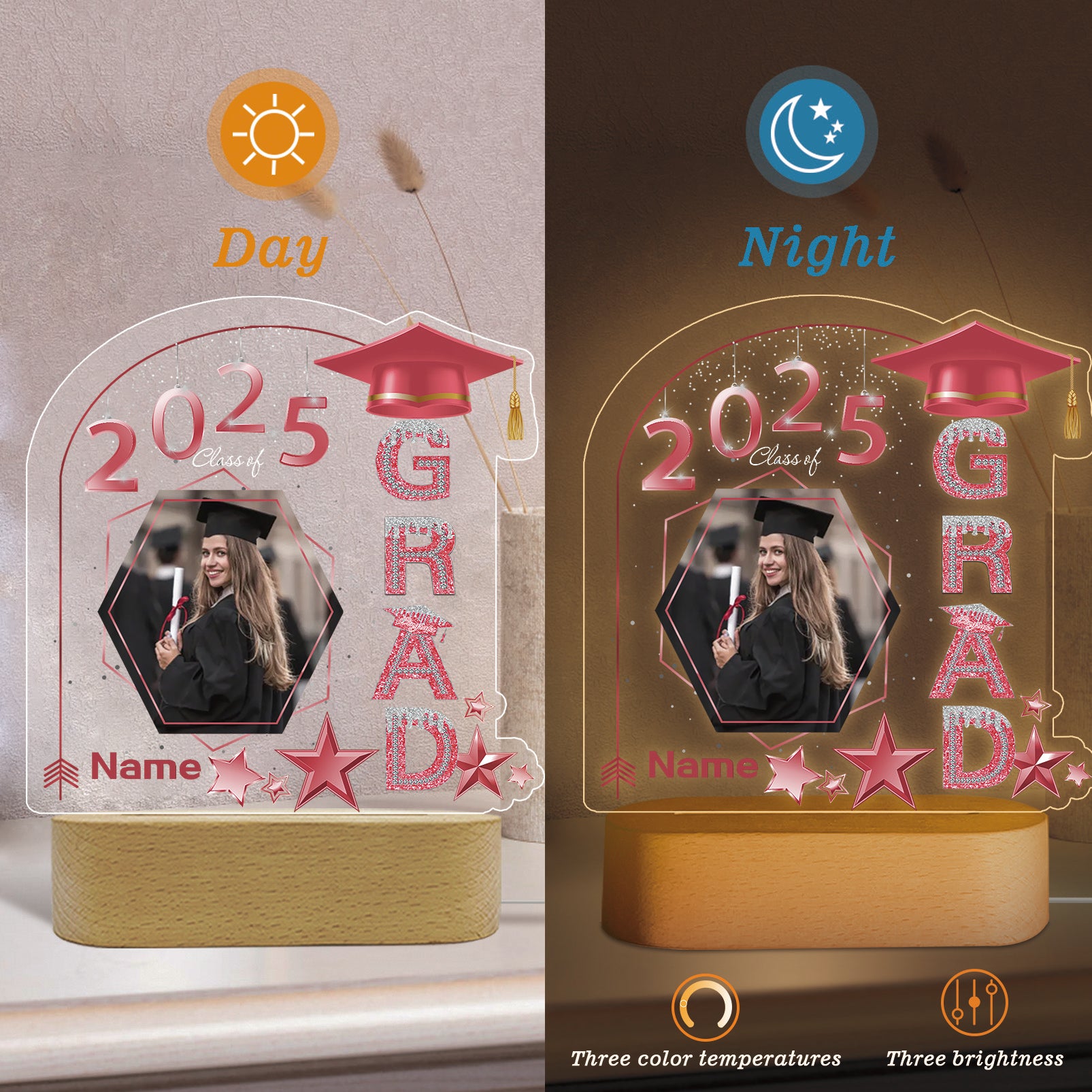 UUBAO Graduation Gifts Personalized Night Light Class of 2025 Custom Photo Name Gifts for Him Her Gifts for College, High School (Pink)