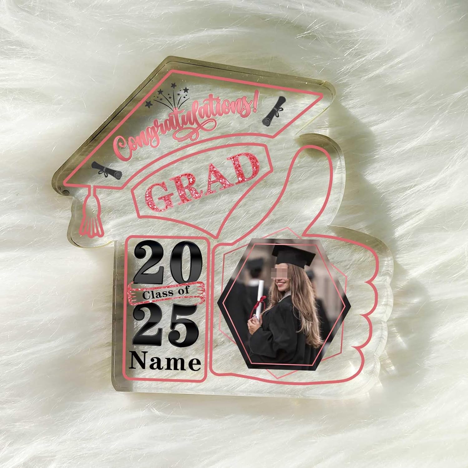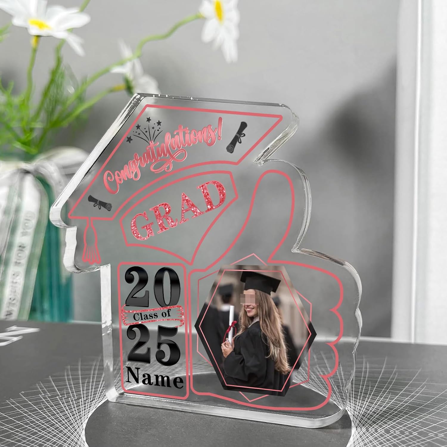 UUBAO Personalized Graduation Decorative Signs Plaques Class of 2024 Desk Paperweight Farewell Memorial Gift with Photo(Pink)