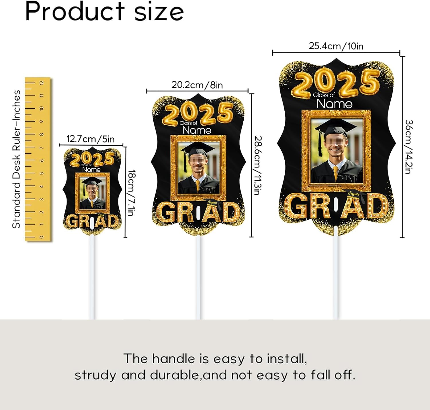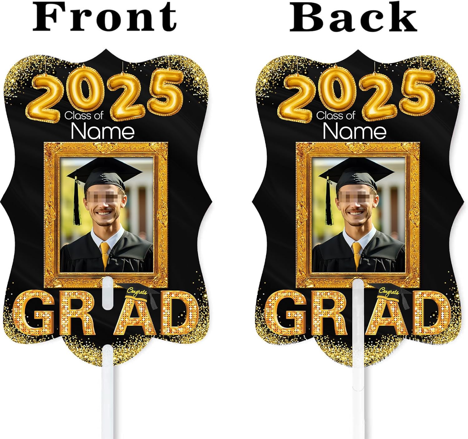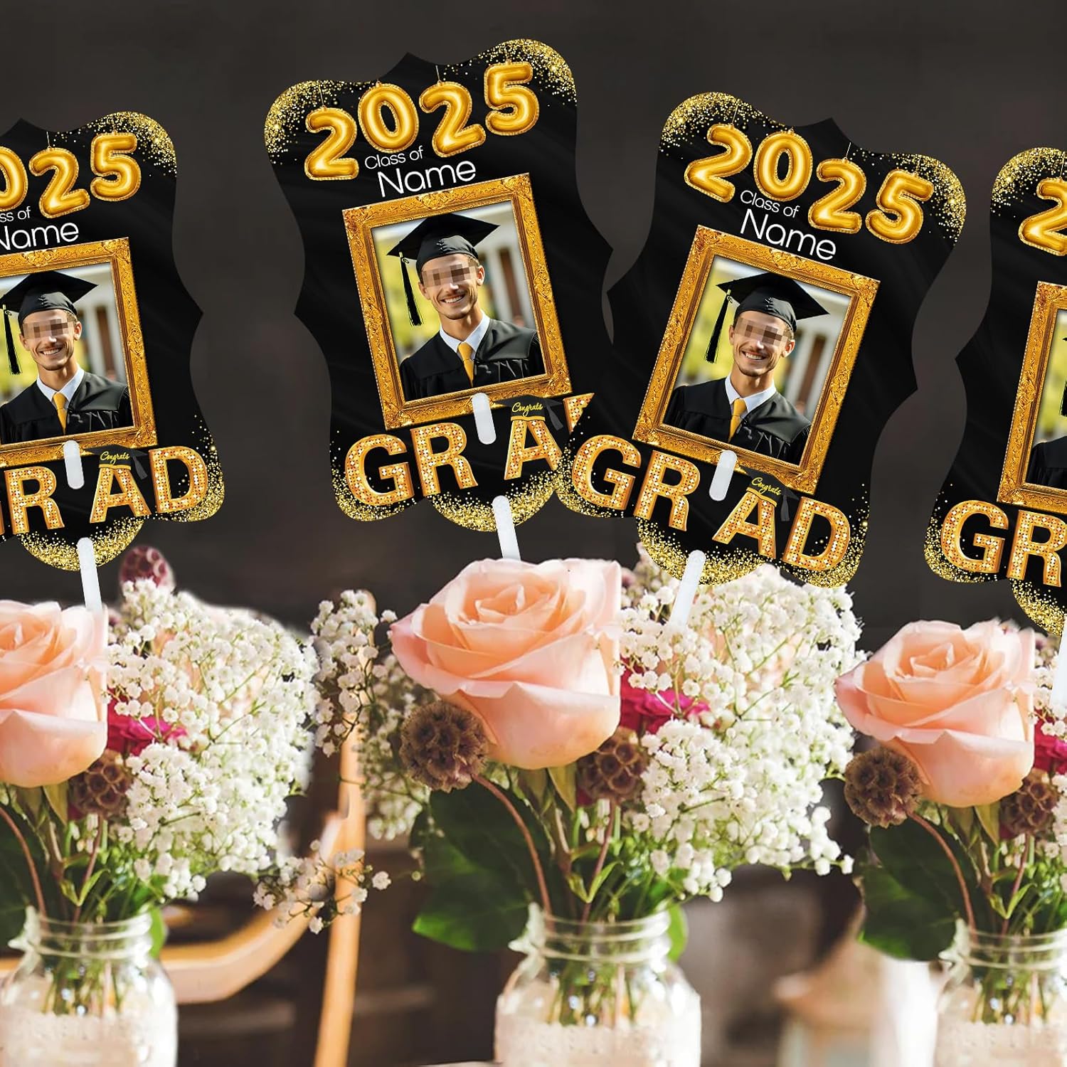 UUBAO Personalized Graduation Double Sided Face Fan Class of 2025 Customized Graduation Head Face Cutout with Handle Fun Photo Prop Supplies(Black and Gold)