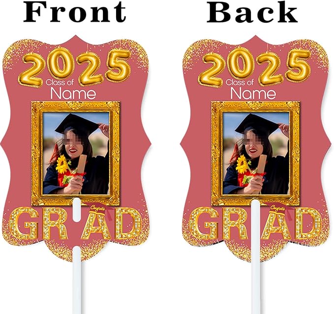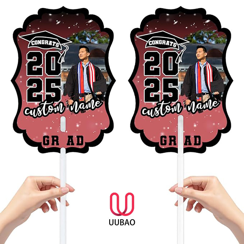 UUBAO Personalized Graduation Double Sided Face Fan Class of 2025 Customized Graduation Head Face Cutout with Handle Fun Photo Prop Supplies(Pink)