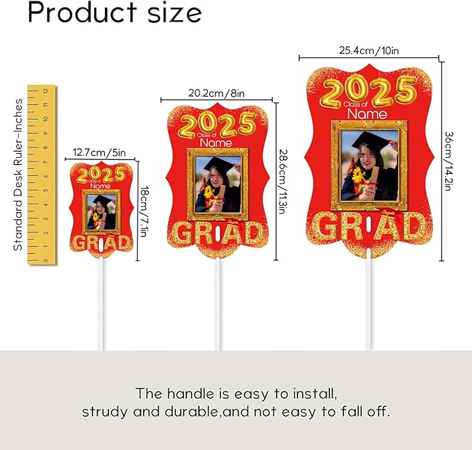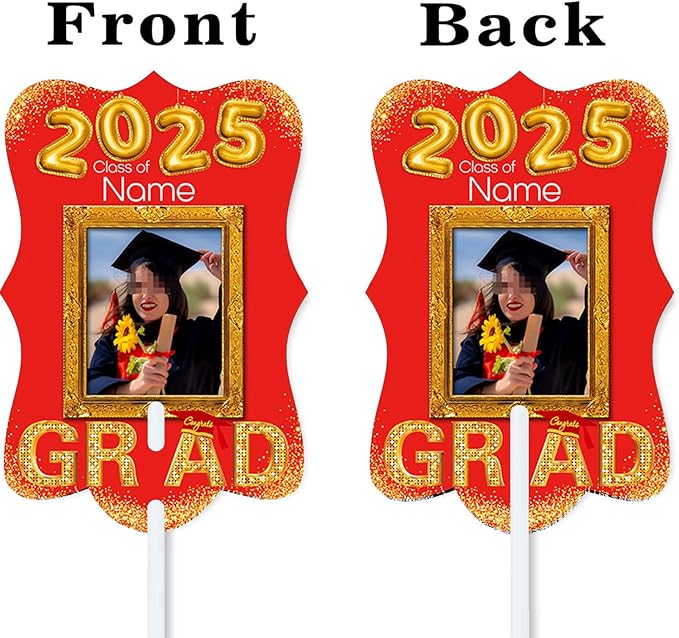 UUBAO Personalized Graduation Double Sided Face Fan Class of 2025 Customized Graduation Head Face Cutout with Handle Fun Photo Prop Supplies(Red)