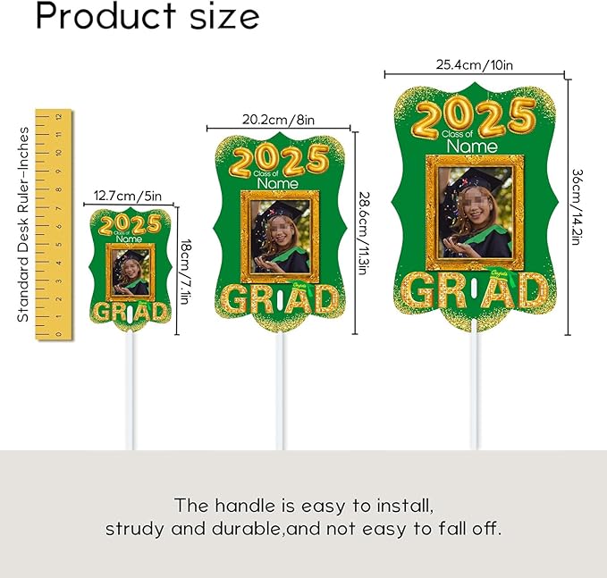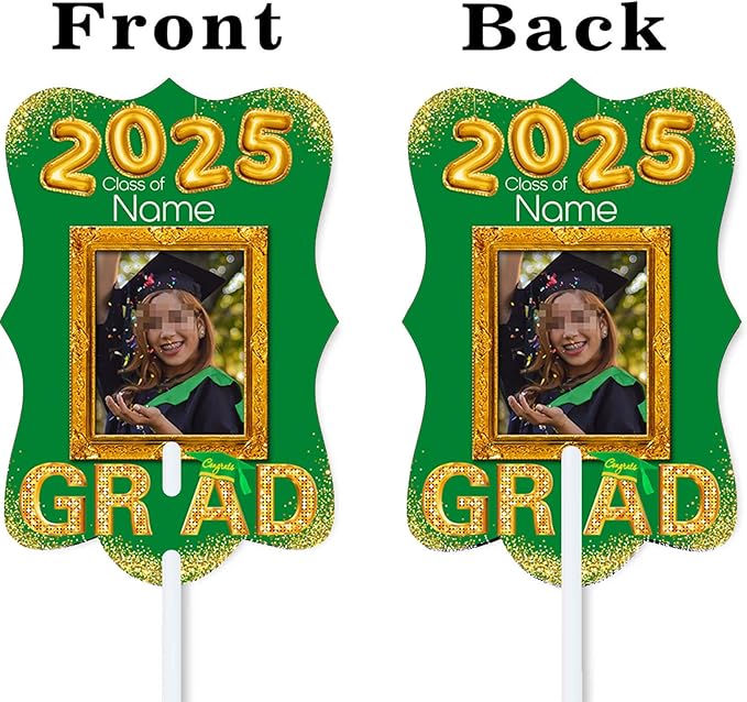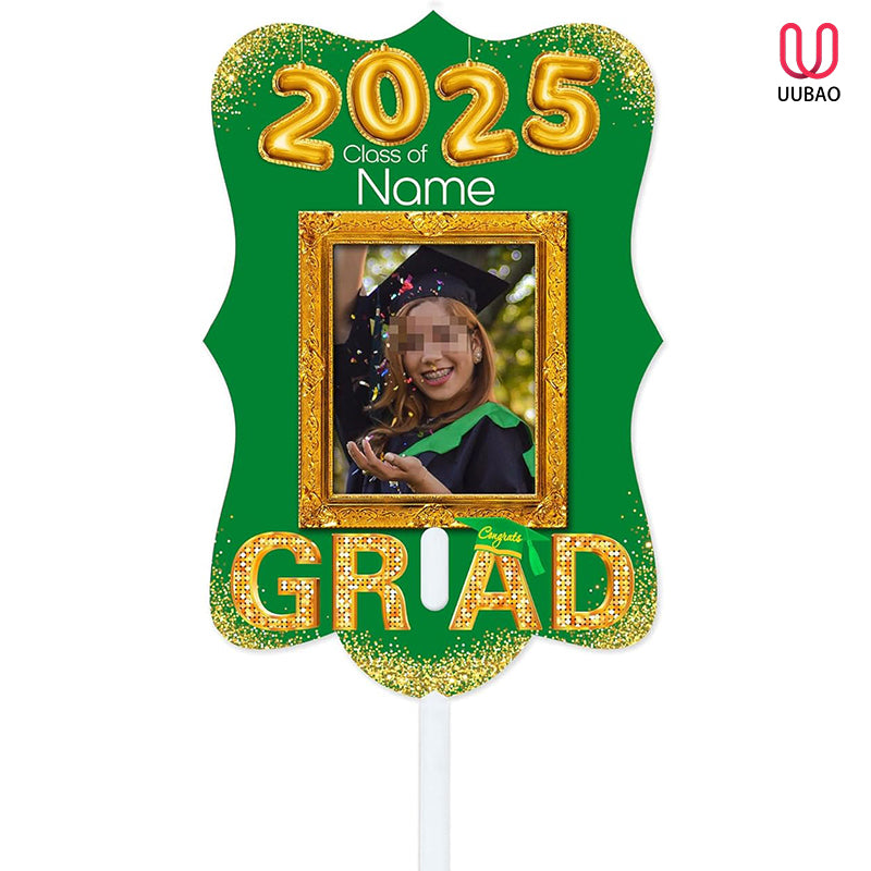UUBAO Personalized Graduation Double Sided Face Fan Class of 2025 Customized Graduation Head Face Cutout with Handle Fun Photo Prop Supplies(Dark Green)