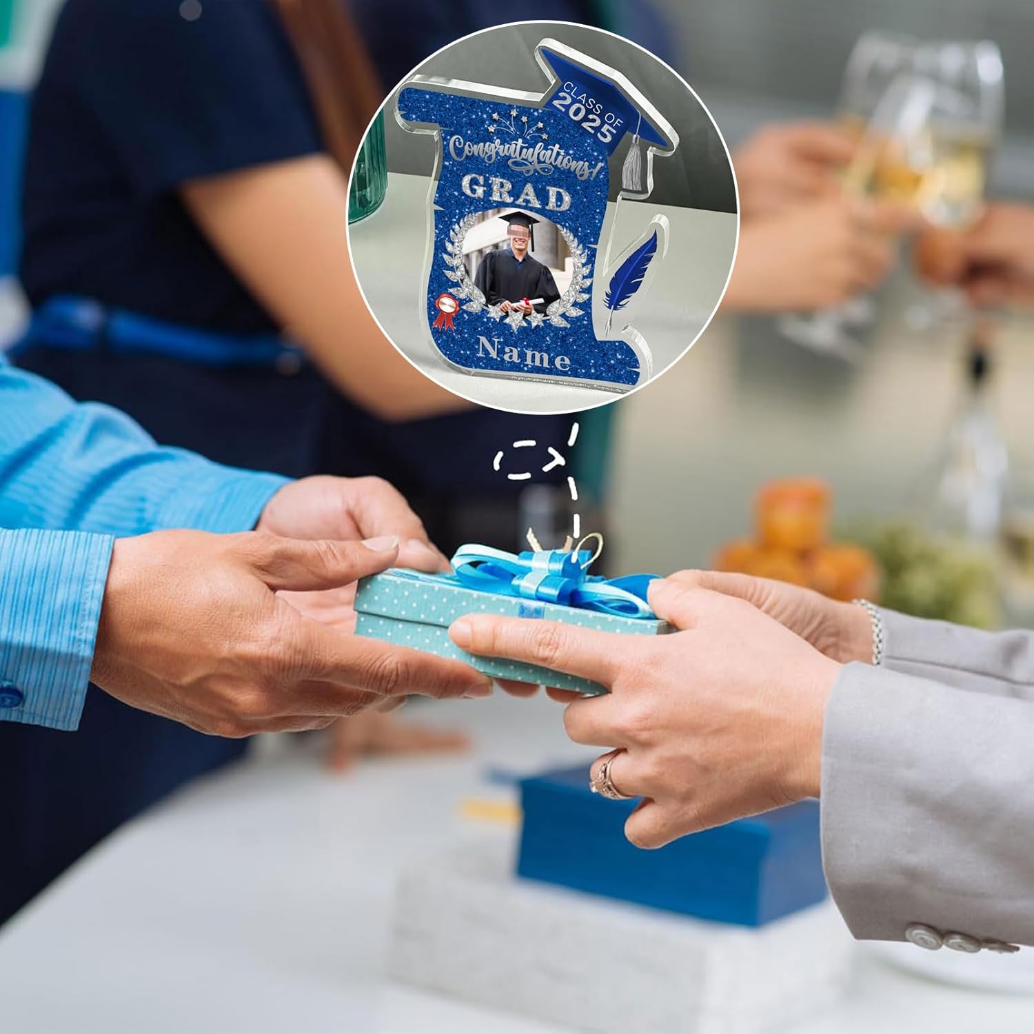 UUBAO Personalized Graduation Gift Class of 2025 Desk Paperweight Farewell Memorial Decorative Signs Plaques with Photo (Blue and Silver)