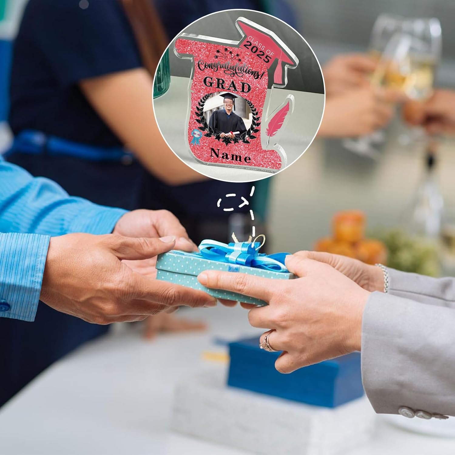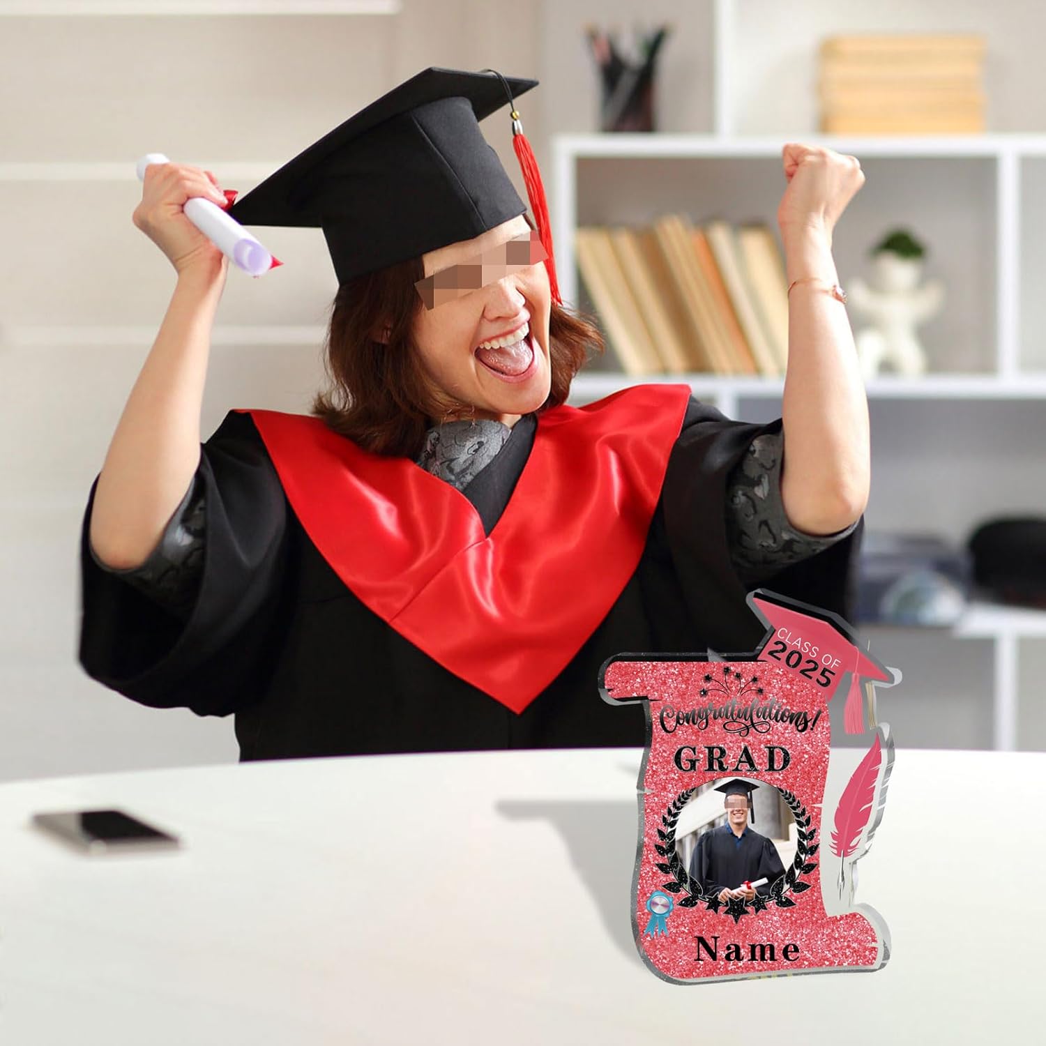 UUBAO Personalized Graduation Gift Class of 2025 Desk Paperweight Farewell Memorial Decorative Signs Plaques with Photo (Pink)