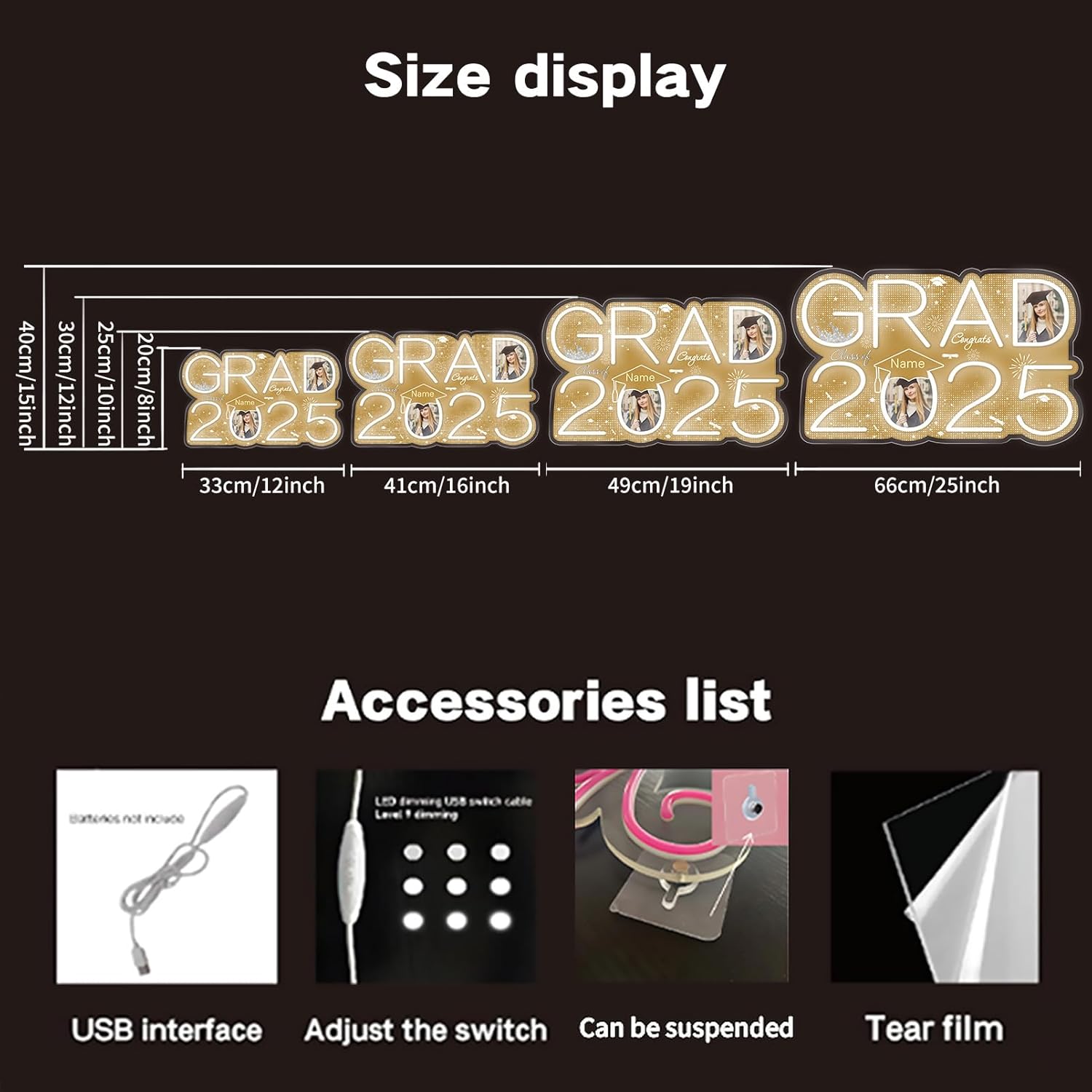 【Customize】Celebrate your graduation with our Custom 2025 Graduation neon sign,the unique style brighten up your space.featuring customizable size, photo and name for a truly personal touch.Just click "customize now" on top right.