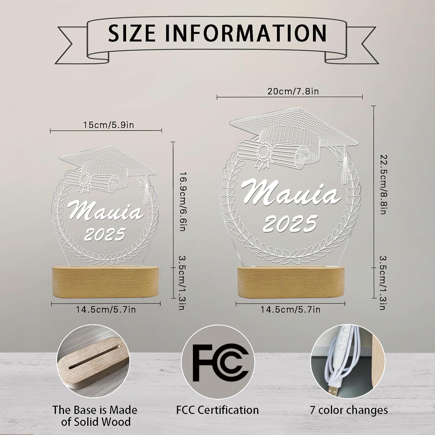 UUBAO Personalized Graduation Lamp Gifts Class of 2025 Custom Name College(Ear of Wheat)