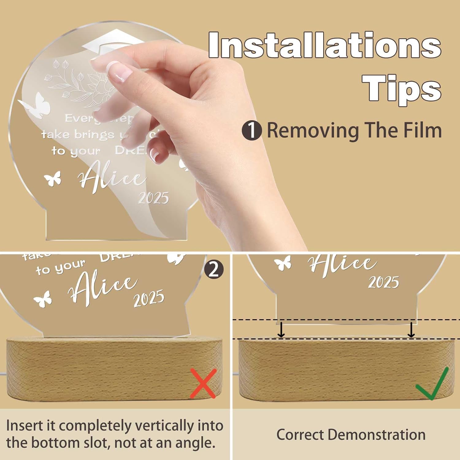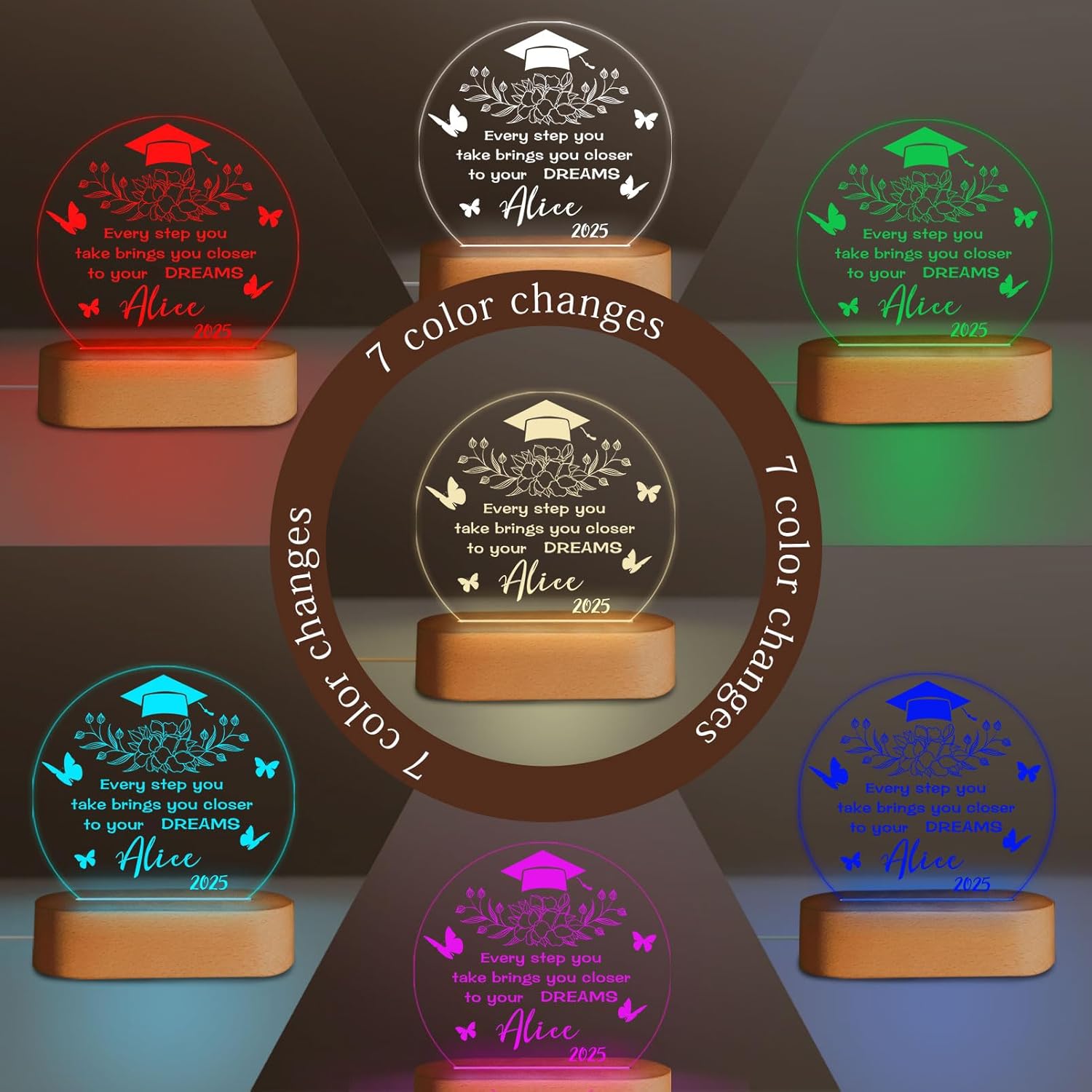 UUBAO Personalized Graduation Lamp Gifts for Her or Him Class of 2025 Custom Name College & Year Congrats Grad 3D Illusion Night Light Decoration for High School Graduation or University (Flower Butterfly)