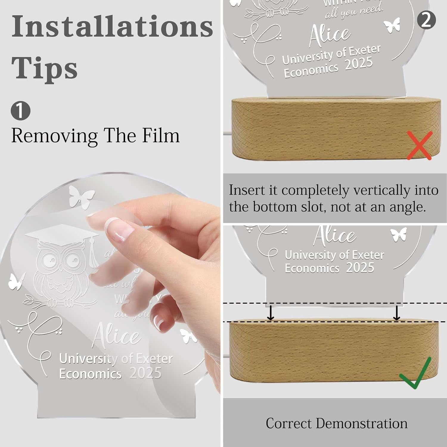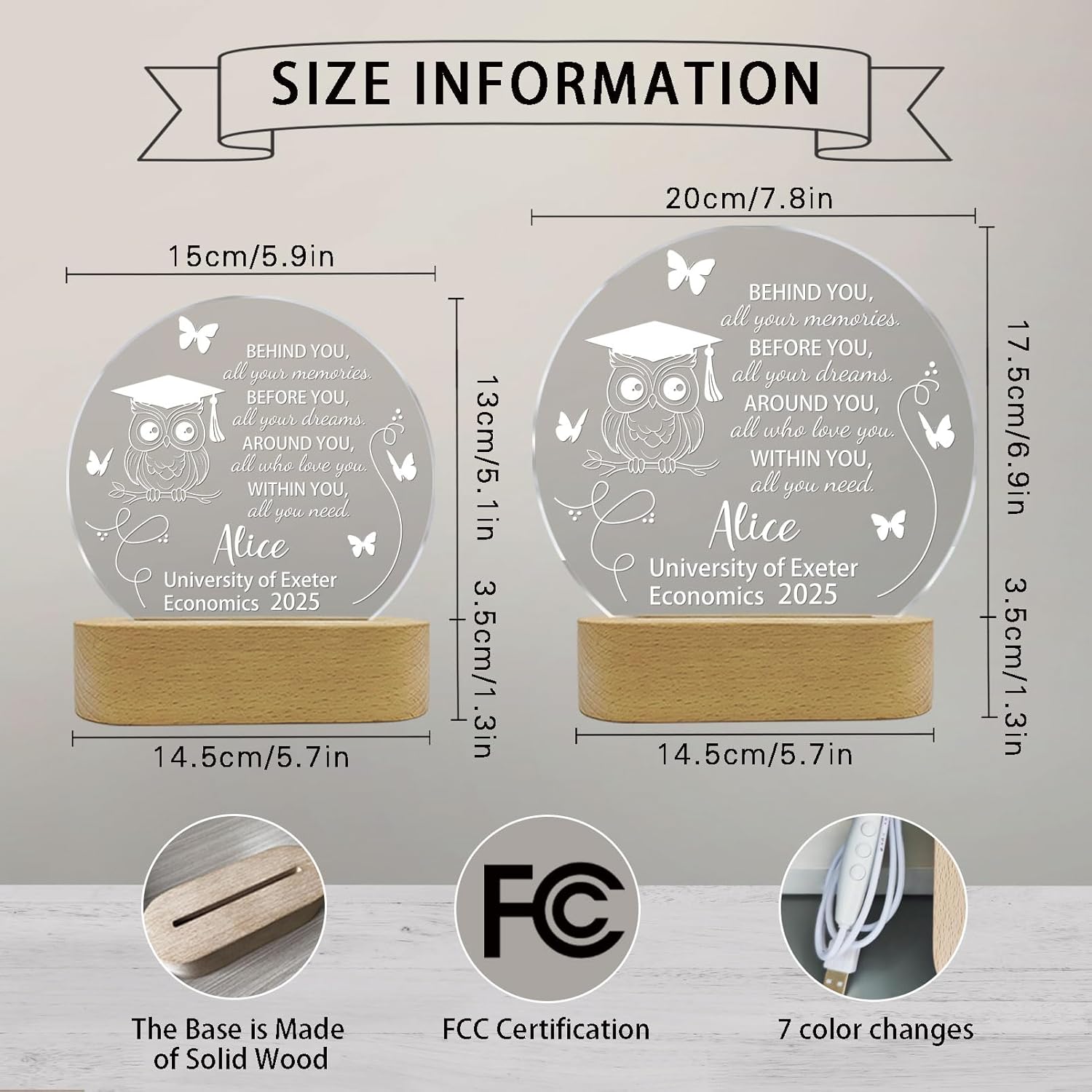 UUBAO Personalized Graduation Lamp Gifts for Her or Him Class of 2025 Custom Name College & Year Congrats Grad 3D Illusion Night Light Decoration for High School Graduation or University (Owl)